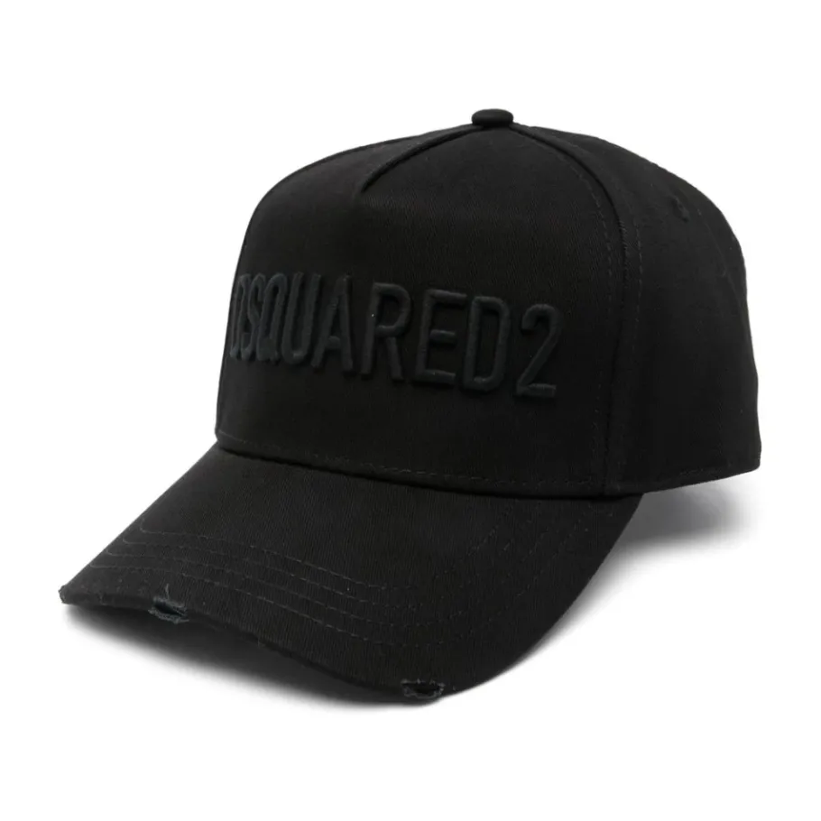 Upgrade je casual look met deze zwarte DSQUARED2 baseballpet met een voorlogo, verstelbare sluiting en gebogen klep. Gemaakt van 100% katoen, het is een must-have accessoire voor mannen.