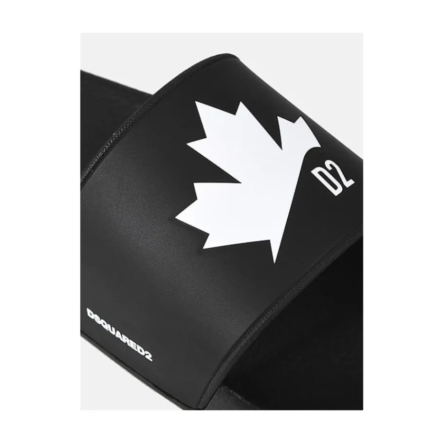 Geef je zomerse stijl een boost met deze strakke zwarte sliders van Dsquared2, ontworpen voor ultiem comfort en veelzijdigheid. Belangrijkste kenmerken: Zwart | Thermoplastisch Polyurethaan | Rubberen zool | Afgeronde neus | Samenstelling en onderhoud: 100% Thermoplastisch Polyurethaan
