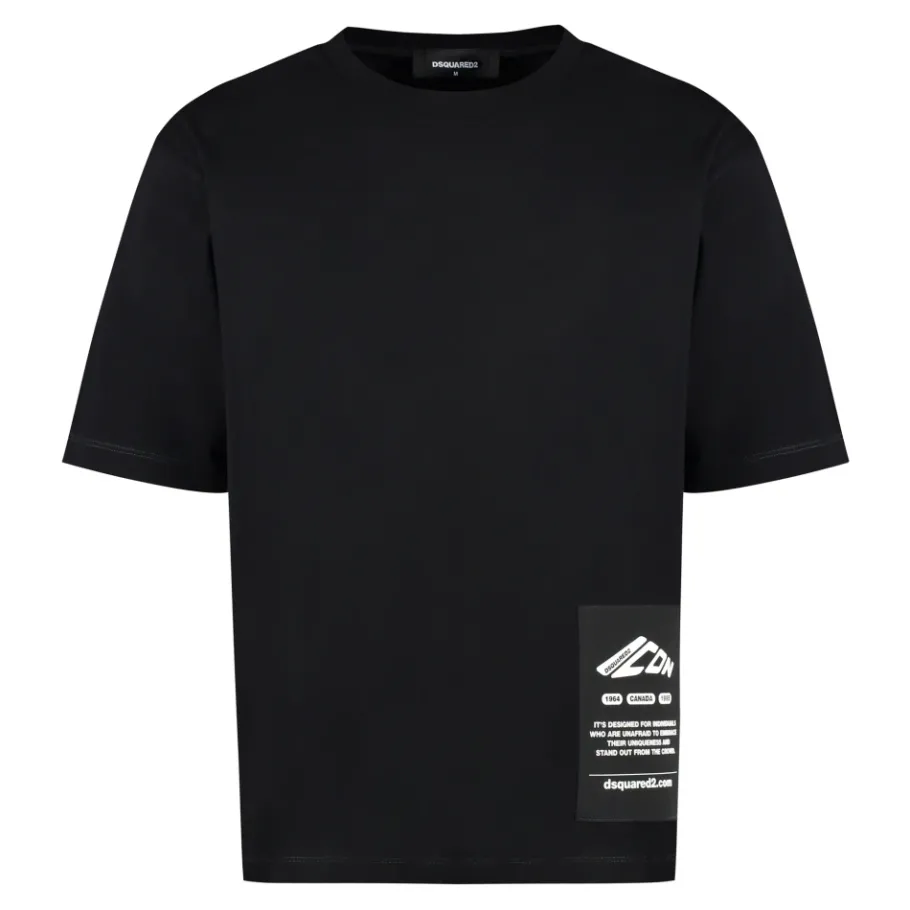 Het Dsquared2 Icon New Generation Loose Fit T-Shirt is een relaxed T-shirt met ronde hals, ontworpen voor dagelijkse casual kleding. Het heeft een geribbelde kraag en de Icon-patch van het merk voor een strakke, kenmerkende look. Belangrijkste kenmerken: Zwart | Katoen | Ronde hals | Geribbelde kraag | Icon-patch | Afmetingen en pasvorm: Loose fit | Samenstelling en verzorging: 100% katoen