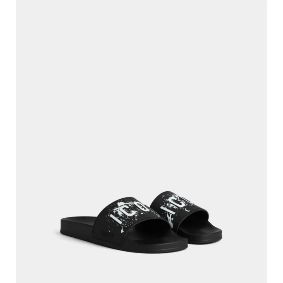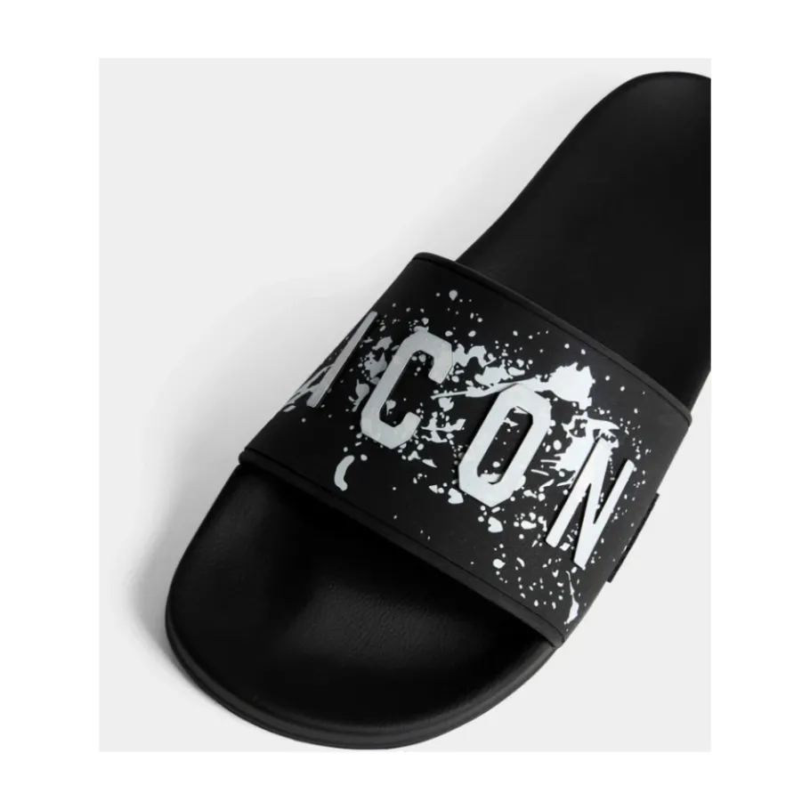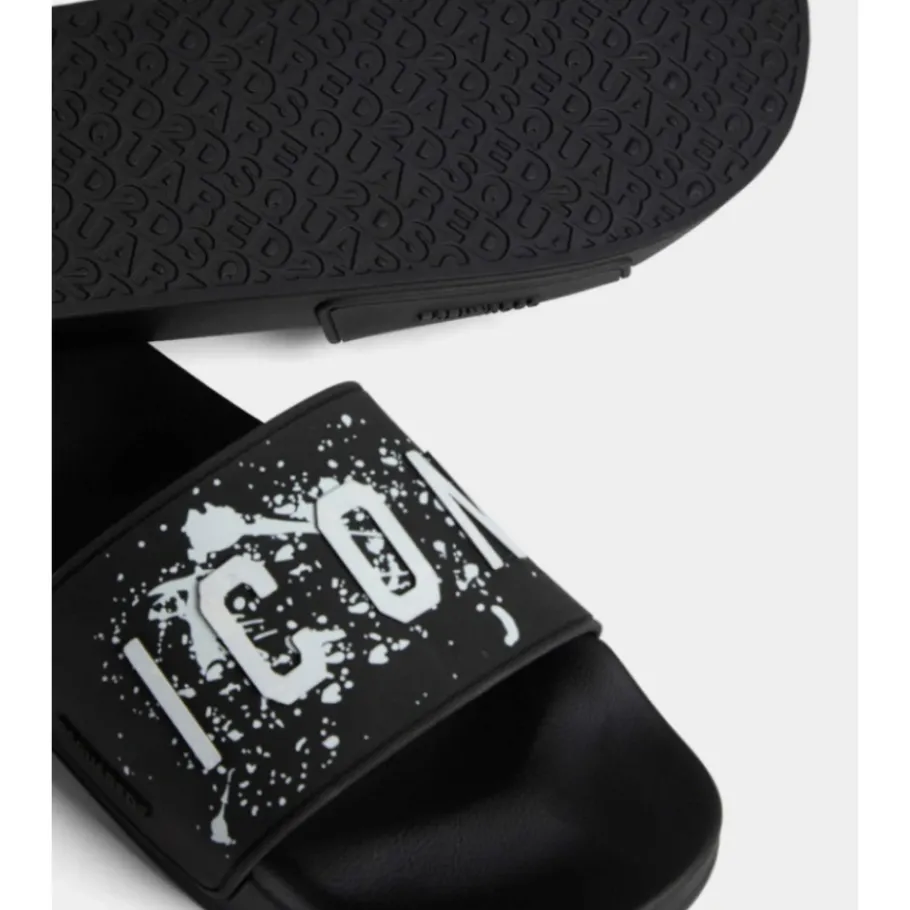 Stap in stijl met deze Dsquared2 ICON splash rubberen sliders voor heren. Voorzien van een ergonomisch voetbed en het iconische verf spetter logo. SAMENSTELLING: Rubber.