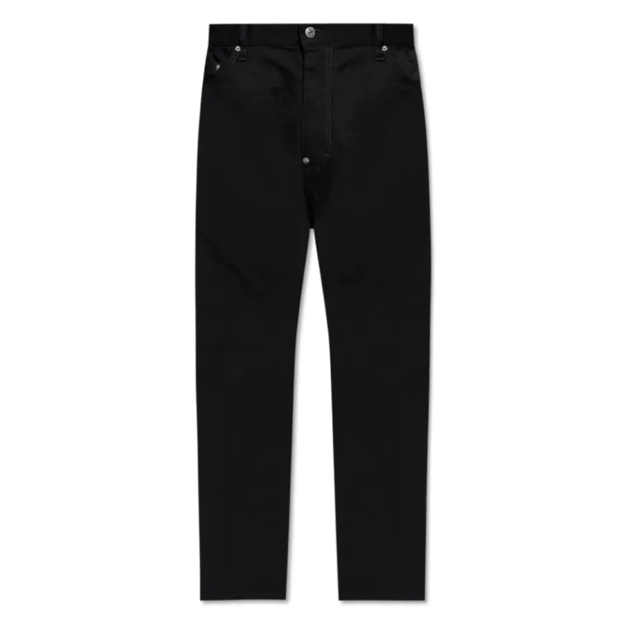 Maak kennis met de Jeans met taps toelopende pijpen van Dsquared2, gemaakt voor wie een mix van moderne stijl en klassieke elegantie waardeert. Deze jeans biedt veelzijdigheid, waardoor hij geschikt is voor zowel zakelijke bijeenkomsten als informele uitstapjes. Belangrijkste kenmerken: Zwart | Denim | Knoop- en ritssluiting | Taps toelopende carrot style pijpen | Subtiel designerlogo op de achterzak | Klassieke metalen klinknagels | Afmetingen en pasvorm: Taps toelopende pasvorm | Samenstelling en onderhoud: 98% katoen | 2% elastaan | Machinewas koud, droogtrommel laag