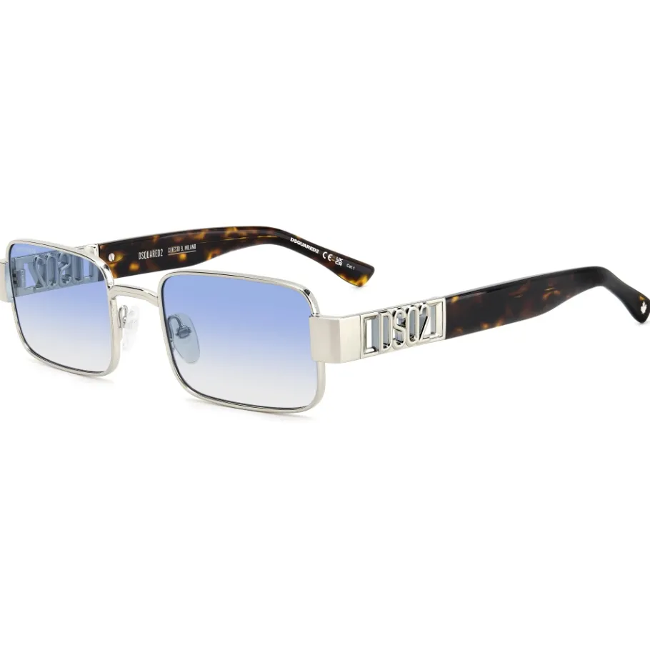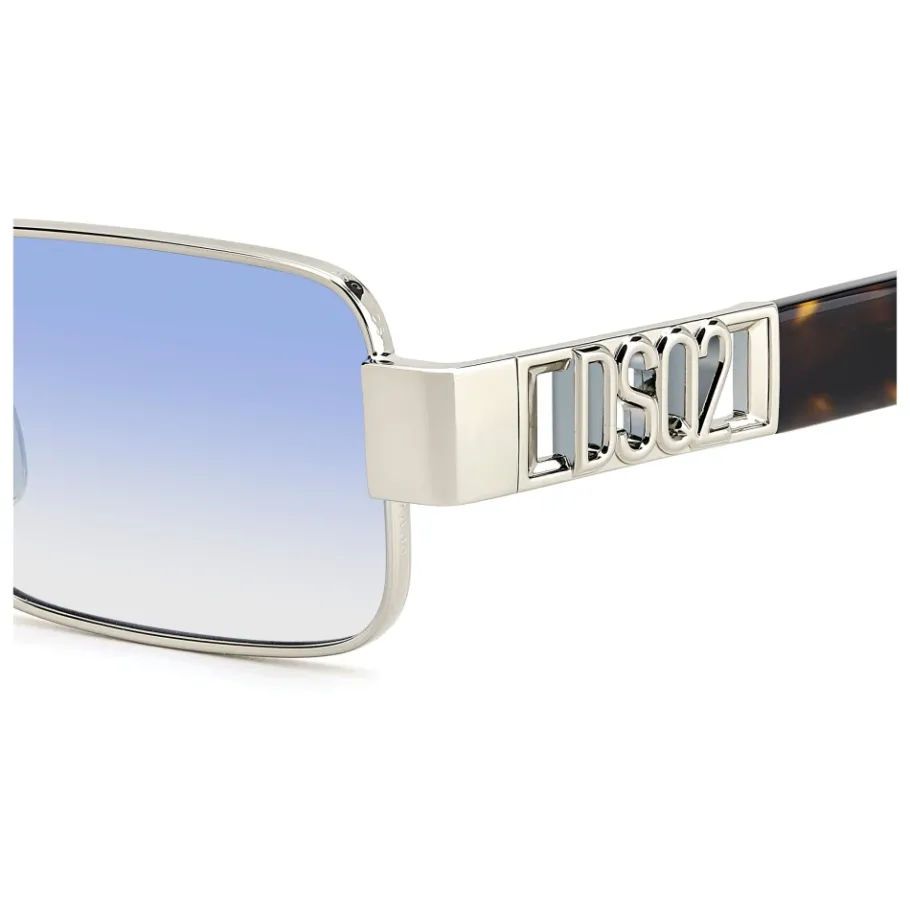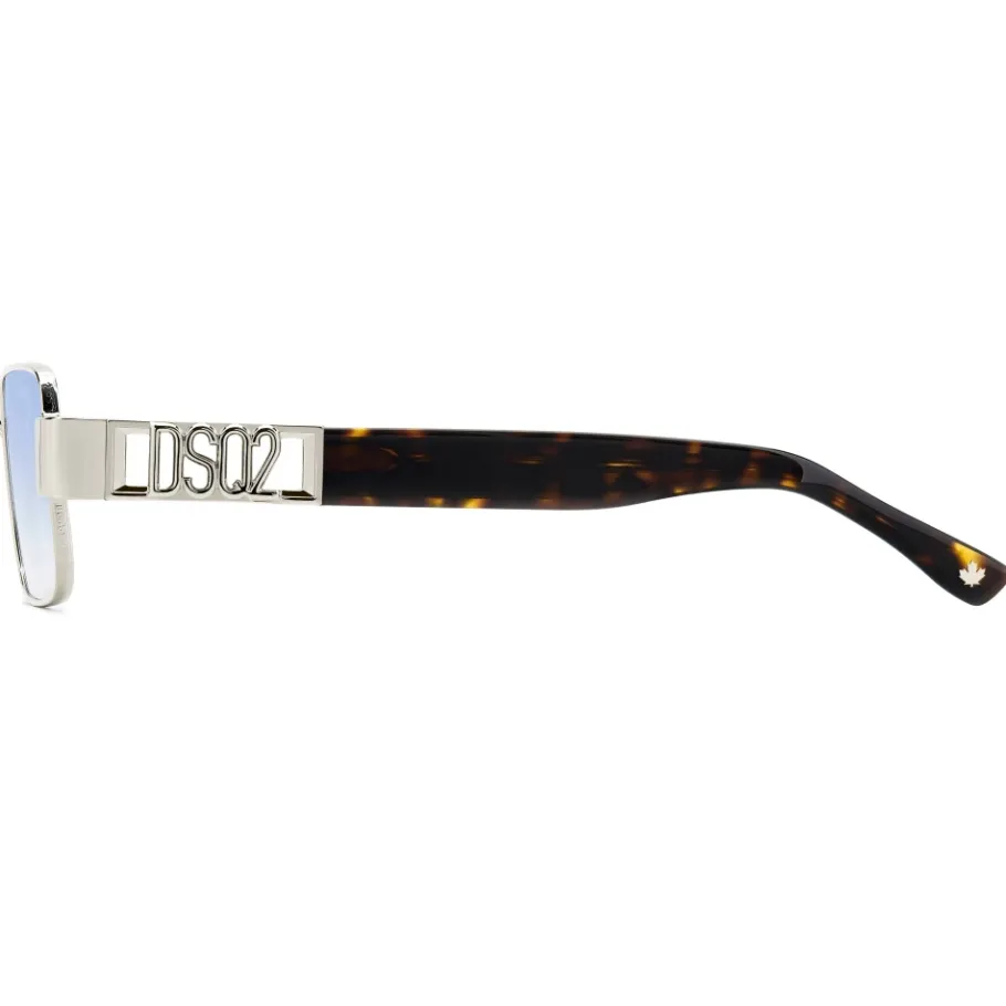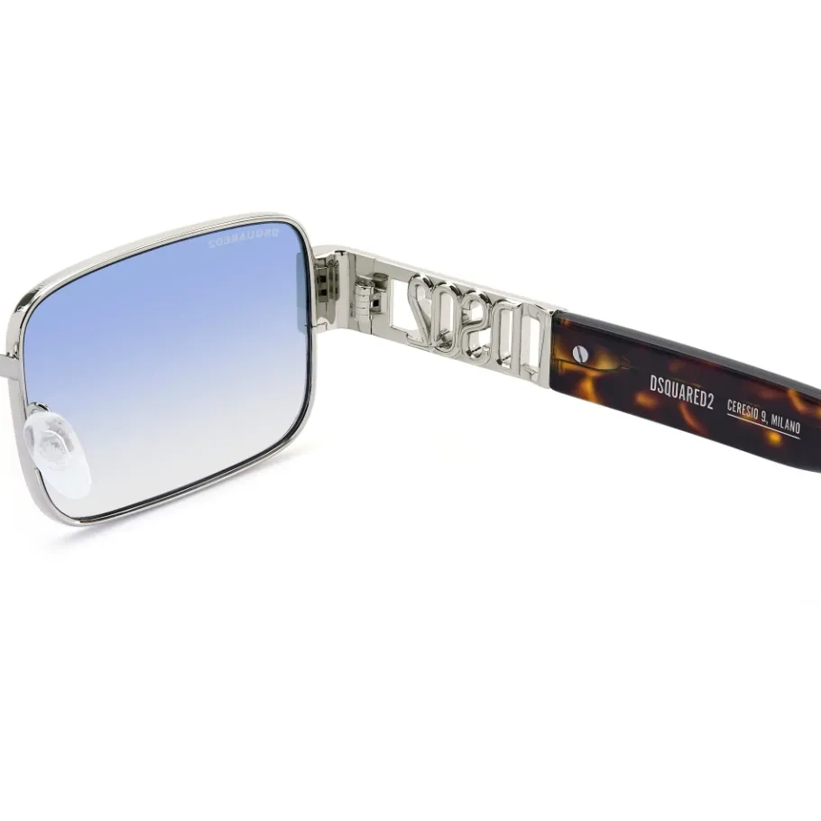 Ontdek de stijlvolle Dsquared2 herenzonnebril met rechthoekig metalen montuur, ontworpen in de pure DSQUARED2-stijl. Met het iconische DSQ2-logo op de pootjes en een subtiel maar kostbaar gravure die het DSQUARED2-logo herhaalt op de voorste profielen. Maat: 54-22-145. Rechthoekige vorm in glanzend zilvermetaal.