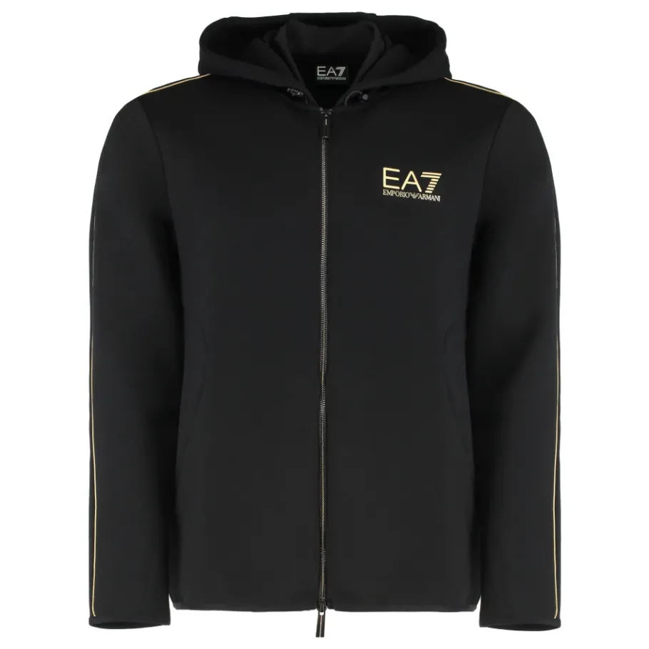 De Emporio Armani EA7 Gold Label Viscose-Blend Hooded Sweatshirt is een verfijnde zip-through ontworpen voor een verhoogde casual look. Het combineert een volledige ritssluiting aan de voorkant met een capuchon en veilige zakken met ritssluiting voor dagelijkse veelzijdigheid. Belangrijkste kenmerken: Zwart | Polyester | Stretchstof | Twee zijzakken met ritssluiting | Volledige ritssluiting | Capuchonhalslijn | Volledige ritssluiting aan de voorkant | Gouden logo detail | Afmetingen & pasvorm: | Samenstelling & onderhoud: 66% Polyester | 27% Viscose | 7% Elastan