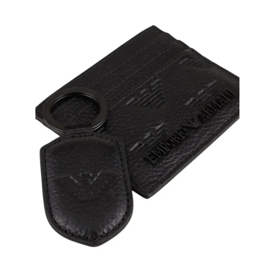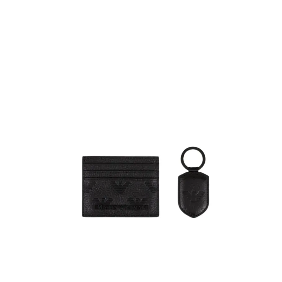 Emporio Armani Embossed Eagle leren kaarthouder en sleutelhanger set-Heren Portefeuilles