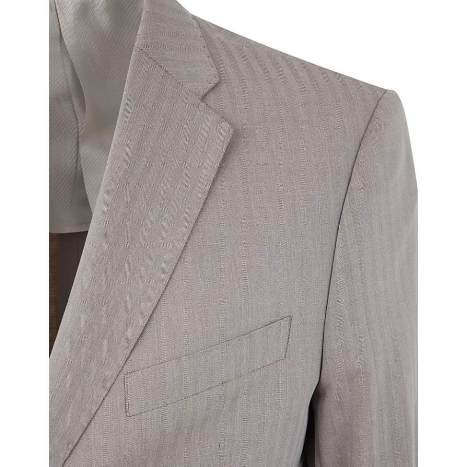 Upgrade uw formele garderobe met het Emporio Armani Verfijnde Beige Single Breasted Pak. Perfect voor elke gelegenheid, dit pak straalt zelfvertrouwen en stijl uit. Belangrijkste kenmerken: Beige | Wolmix | Single breasted | Notched lapel | Twee-knoopssluiting | Afmetingen en pasvorm: Regular fit | Samenstelling en onderhoud: 80% Wol | 20% Polyester | Uitsluitend chemisch reinigen