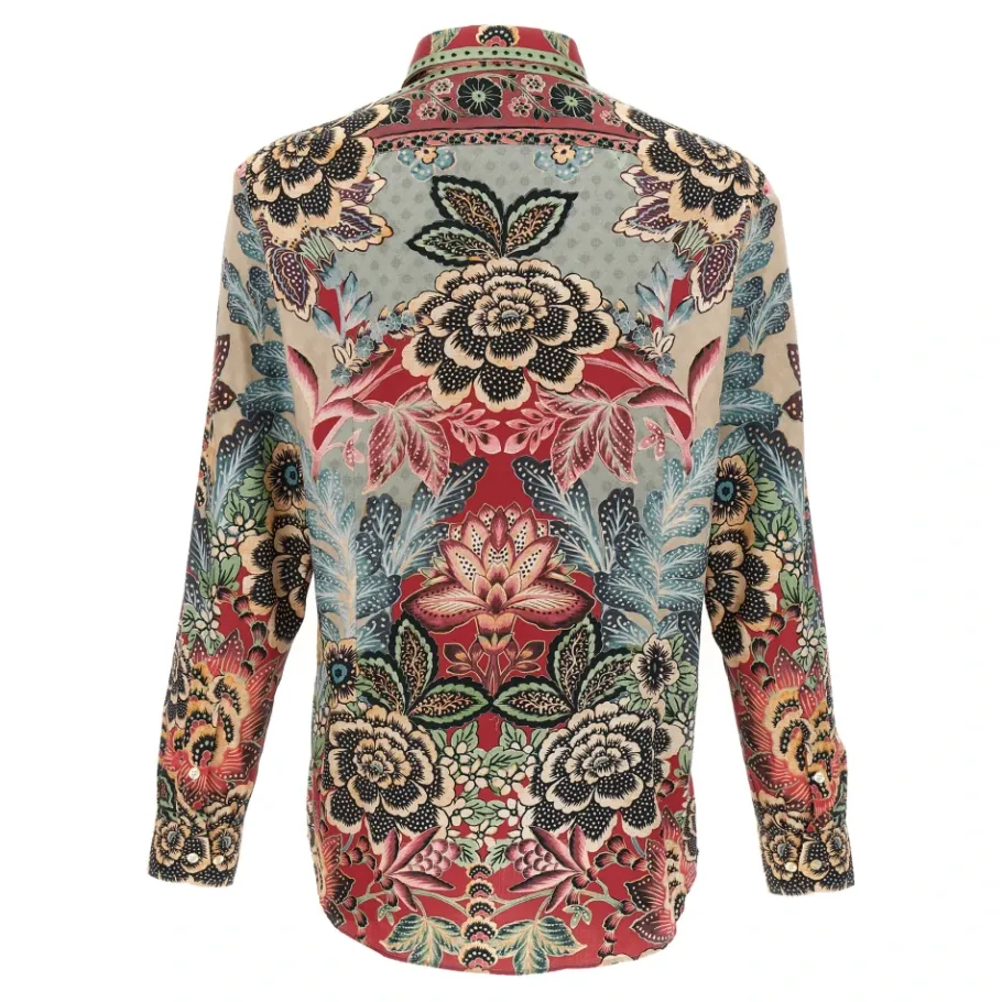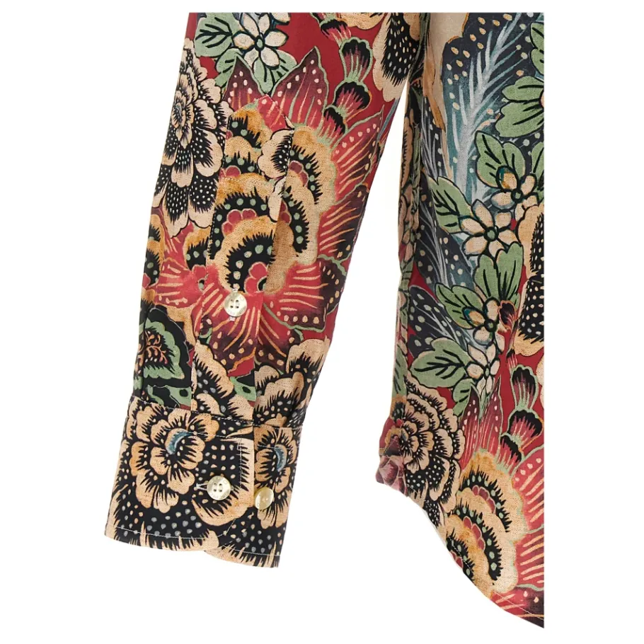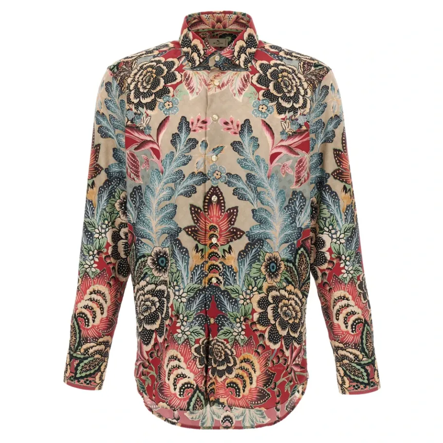 Het Etro katoenen overhemd met geplaatste print is een overhemd van puur katoen met een decoratieve geplaatste bloemen- en bladerprint. Het is ontworpen voor smart-casual kleding met een puntige kraag en manchetten met lange mouwen. Belangrijkste kenmerken: Multicolor | Katoen | Knoopsluiting | Werkende manchetten met dubbele knoop | Puntige kraag | Geplaatste bloemen- en bladerprint | Lange mouwen met manchetten | Afmetingen en pasvorm: Roma regular fit | Samenstelling en verzorging: 100% katoen