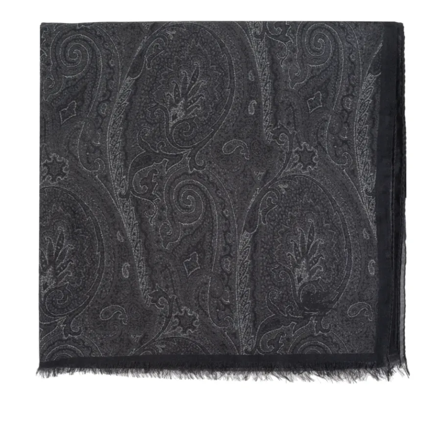 De Etro Paisley Print Sjaal van een Modal-Cashmere Mix combineert het kenmerkende paisley motief van het huis met een zachte modal-cashmere stof voor een verfijnde accessoire die zowel geschikt is voor formele als smart-casual looks. Belangrijkste kenmerken: Grijs | Modal en cashmere | Zacht gevoel | Lichtgewicht drapering | Franje randen | Royale afmetingen voor veelzijdig wikkelen | Ingewikkeld paisley patroon | Subtiele blad/druppel motieven | Rechthoekige vorm | Afmetingen & pasvorm: Breedte: 67 cm | Lengte: 200 cm | Model afmetingen: Lengte: 193 cm, Borst: 95 cm, Taille: 82 cm, Heupen: 93 cm | One size | Samenstelling & verzorging: 90% modal | 10% cashmere