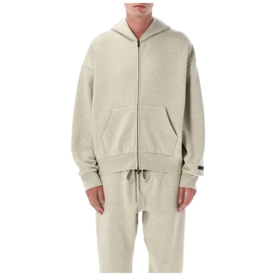 Upgrade je casual stijl met deze klassieke volledige rits hoodie van Fear Of God Essentials. Gemaakt van een comfortabele katoenmix, heeft deze hoodie een dubbele laag ontwerp, verlaagde schouders en unieke branding details. Perfect voor laagjes, het bevat een kangoeroezak en een volledige ritssluiting. De relaxte pasvorm draagt bij aan de nonchalante uitstraling. Model is 1,90m lang en draagt maat L.