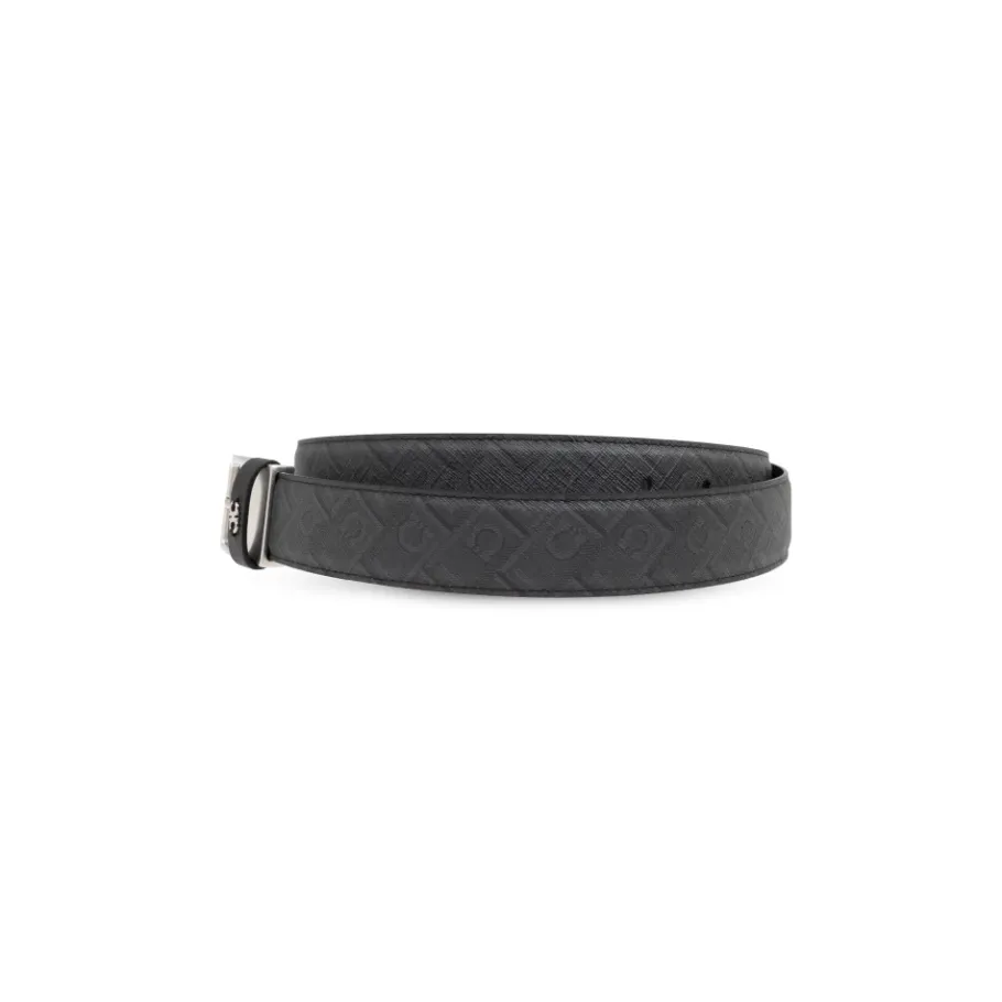 Maak kennis met de omkeerbare riem van Salvatore Ferragamo, een luxueus accessoire vervaardigd uit premium kalfsleer. Deze riem combineert elegantie met functionaliteit, met een verfijnd geometrisch patroon en een veelzijdig donkergrijs-zwarte kleurenschema. Belangrijkste kenmerken: Grijs | Zwart | Kalfsleer | Omkeerbaar | Geometrisch patroon | Zilveren metalen gesp met logo | Samenstelling en onderhoud: 100% Kalfsleer
