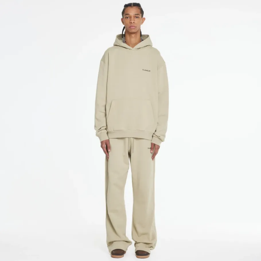 Blijf stijlvol en comfortabel met de Flâneur Logo Hoodie in Beige. Voorzien van Flâneur belettering op de borst, elastische manchetten en een kangoeroezak. Gemaakt van 100% katoen in Turkije. Verkrijgbaar in verschillende maten.