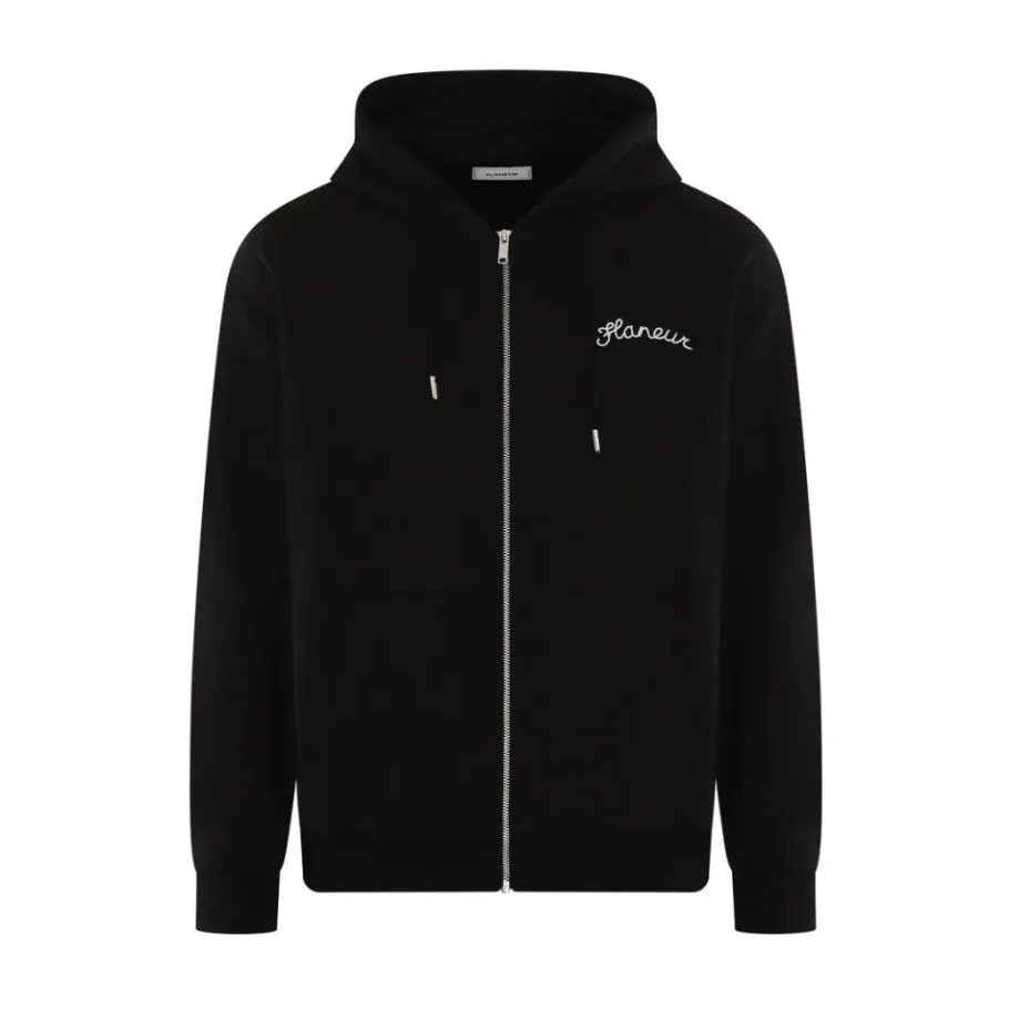 FLÂNEUR Heren Signature Zip-Up Hoodie Zwart. Valt normaal: bestel je eigen maat.
