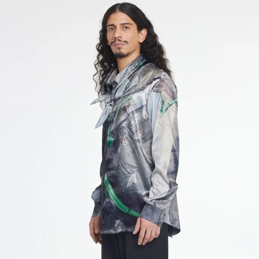 FLÂNEUR Street Image Viscose Shirt met Capuchon-Heren Overhemden