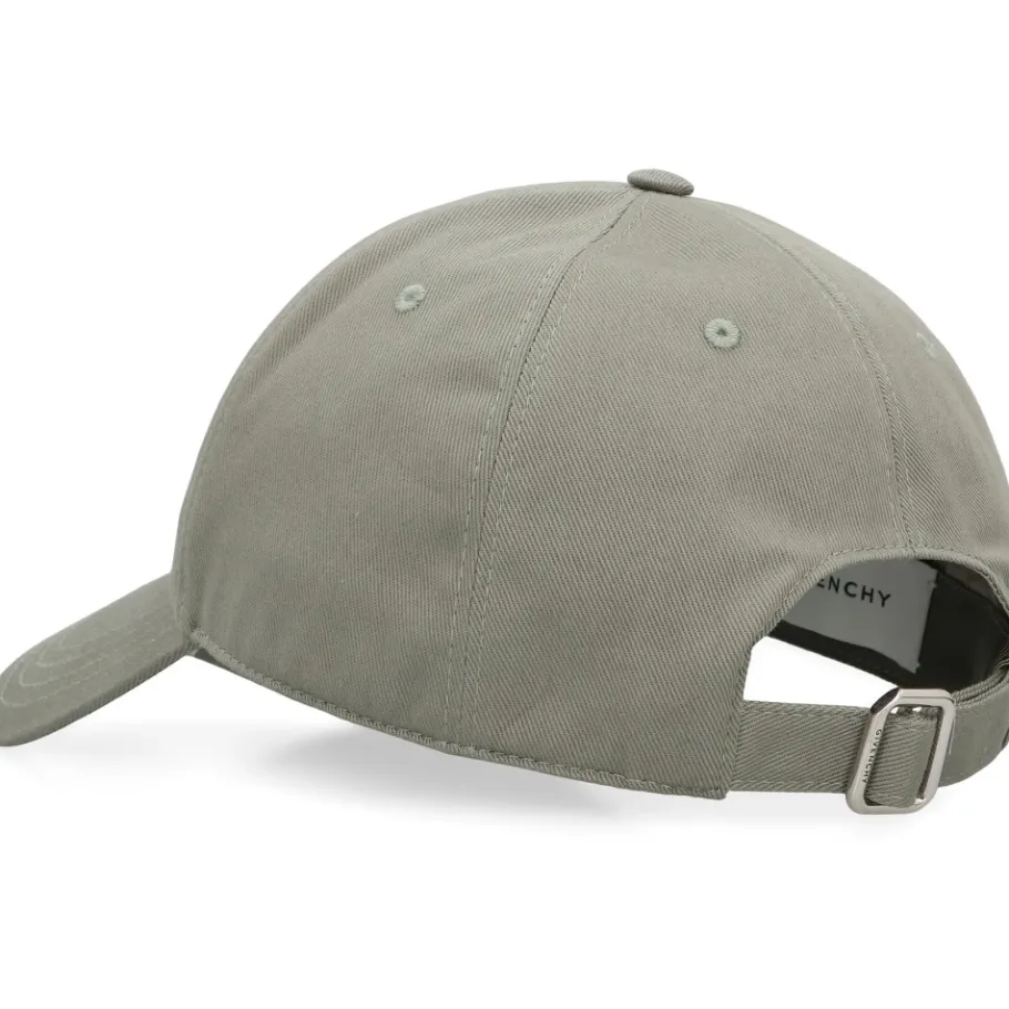 De Givenchy Paris geborduurde cap van katoen combineert een silhouet met gebogen rand met de geborduurde handtekening van het merk voor een verfijnde alledaagse cap. Het ontwerp is voorzien van een verstelbaar lipje met metalen gesp voor een persoonlijke pasvorm. Belangrijkste kenmerken: Saliegroen | Katoenen twill | Comfortabel | | Verstelbare sluiting met metalen gesp | Gebogen rand | Geborduurd logo op de voorkant | Minimaal, modern silhouet | Afmetingen en pasvorm: Hoofdomtrek: 50,8–60,96 cm | One-size fit | Geschikt voor een hoofdomtrek van 50,8–60,96 cm | Samenstelling en verzorging: 90% katoen | 10% acryl | Voering: 100% cupro (cuprammonium rayon)