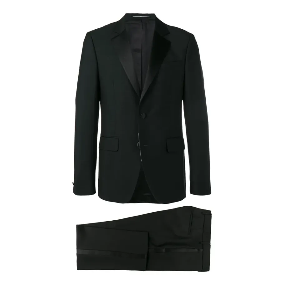Upgrade je formele look met dit zwarte wollen twee-delige pak van Givenchy. Het pak bestaat uit een jasje met lange mouwen, een slim fit, een voorsluiting, satijnen revers en biezen, en een broek met een slim fit en persvouwen.
