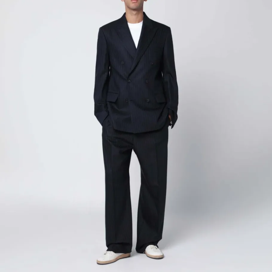 De Golden Goose Double-Breasted Blazer is een getailleerd gestreept jasje dat klassieke pakdetails combineert met een modern silhouet. De double-breasted voorkant en de puntige revers maken het geschikt voor formele en smart-casual gelegenheden. Belangrijkste kenmerken: Blauw | Virgin wool | Knoopsluiting | Klepzakken aan de voorkant | Borstzak | Manchetten met knopen | Double-breasted | Puntige revers | Streepjespatroon | Gevoerde schouders | Korte jaslengte | Afmetingen & pasvorm: Regular fit | Samenstelling & verzorging: 99% virgin wool | 1% katoen