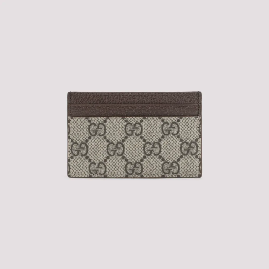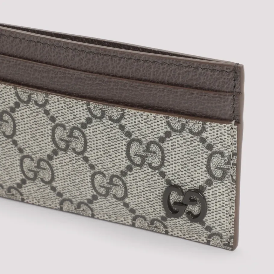 De Gucci GG Wallet is een compacte GG Supreme portemonnee, ontworpen voor dagelijkse organisatie van kaarten en biljetten. Het combineert kenmerkend GG-textiel met bruin lederen afwerking en een logo aan de voorkant voor een verfijnd, praktisch accessoire. Belangrijkste kenmerken: Beige | Ebbenhout | Bruin | Textiel | Twee kaartgleuven aan de voorkant | Twee kaartgleuven aan de achterkant | Eén biljetcompartiment aan de bovenkant | GG Supreme textielpatroon | Logo detail aan de voorkant | Bruin lederen afwerking aan de bovenkant | Afmetingen & pasvorm: B:11cm | H:7cm | D:0,5cm | Samenstelling & verzorging: Textiel | Leder