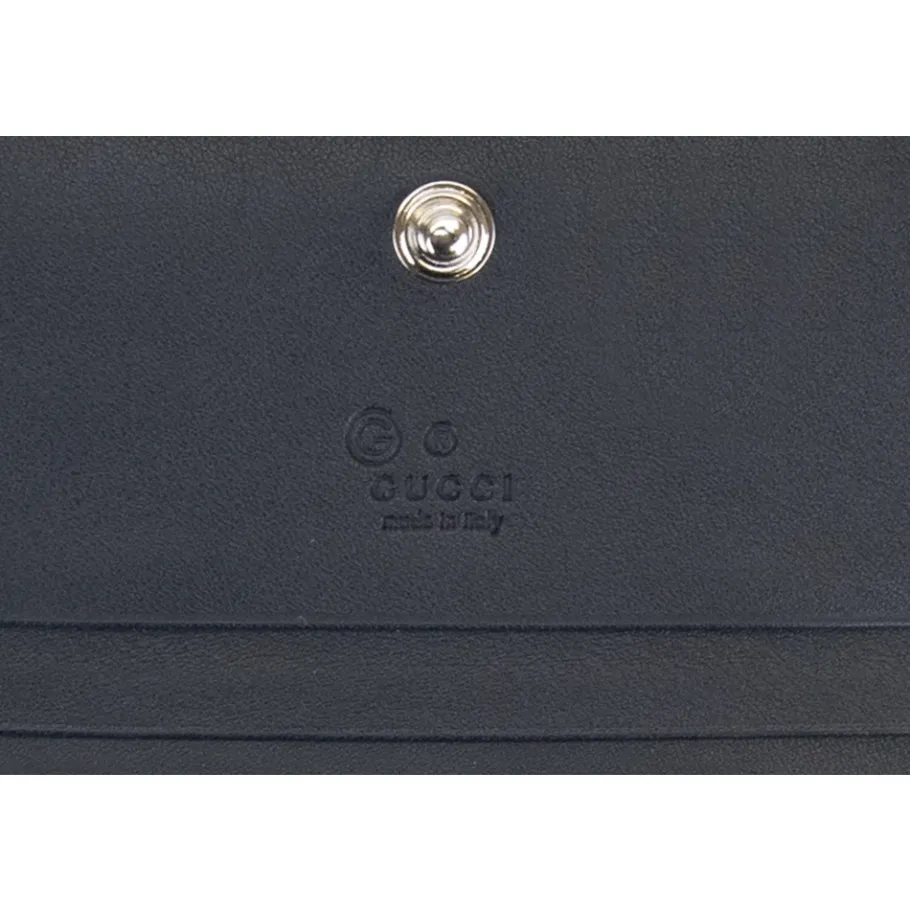 Upgrade je stijl met deze herenportemonnee van Gucci. Gemaakt van leer met een met stof gevoerd interieur, heeft het het iconische ‘GG’ merkmotief aan de buitenkant. Deze in Italië gemaakte portemonnee bevat een centrale muntzak met ritssluiting, twee kaartsleuven en een mini-envelopzak. Met extra kaartsleuven aan de binnenkant van de sluiting en een drukknoopsluiting is deze portemonnee zowel stijlvol als functioneel. Afmetingen: Breedte 11 cm, Hoogte 8 cm, Diepte 2,5 cm.