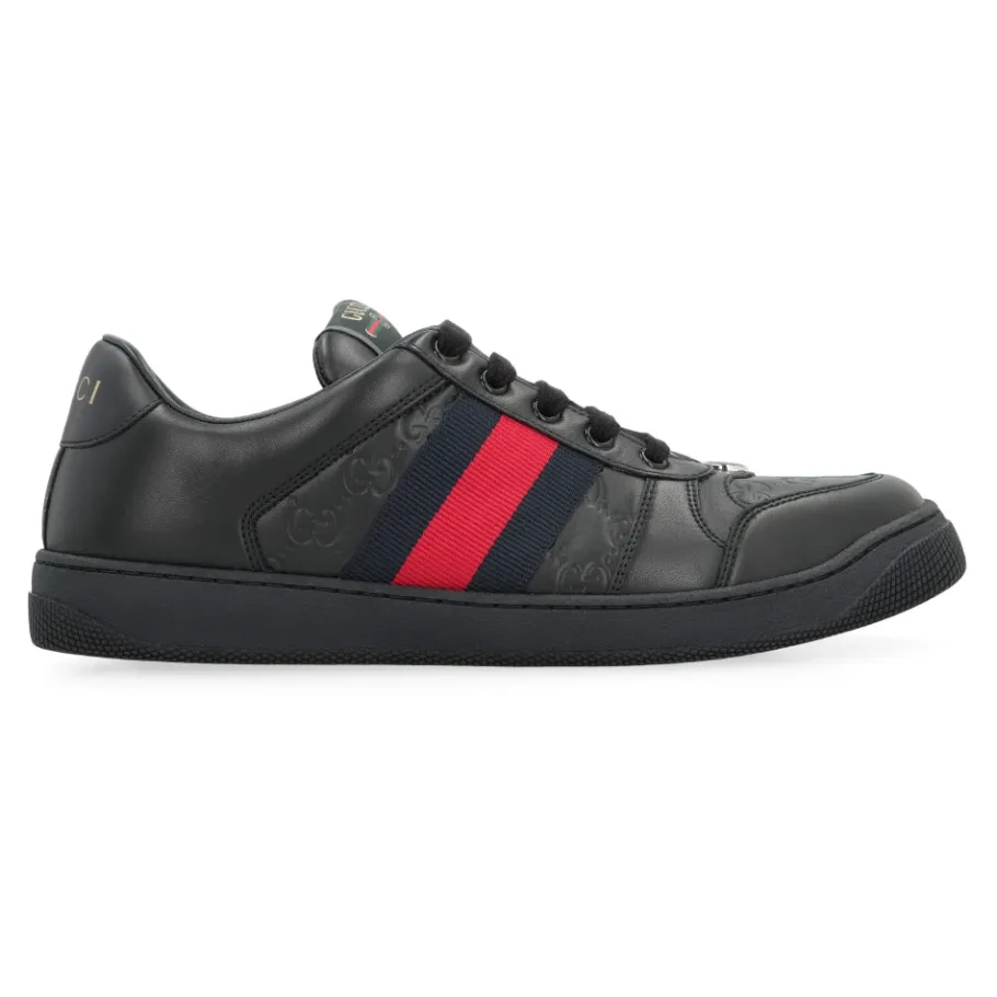 De Gucci Screener Low-top sneakers combineren lamsleer met kenmerkende webdetails voor een verfijnde, alledaagse sneaker. Het lage silhouet en de ronde neus maken ze veelzijdig voor zowel casual als geklede looks. Belangrijkste kenmerken: Zwart | Lamsleer | Webdetail aan de zijkanten | Ronde neus | Laag silhouet | Samenstelling & onderhoud: 100% Lam