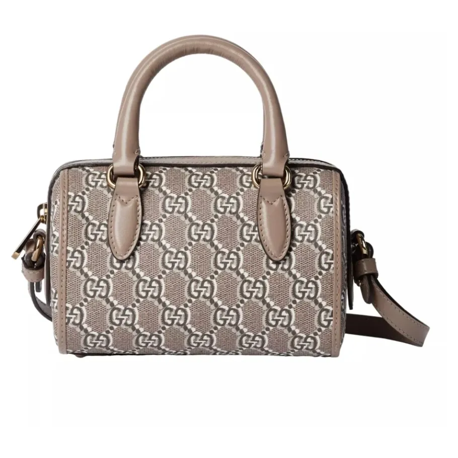 De Gucci Super Mini Ophidia Bowler Bag combineert het GG Shadow monogram canvas met leren details voor een compacte, gestructureerde tas. Het handvat aan de bovenkant en de afneembare, verstelbare schouderriem maken hem geschikt om in de hand of crossbody te dragen. Belangrijkste kenmerken: Bruin | Taupe | Multicolor | GG Shadow monogram canvas en leren details | Ritssluiting | Handvat aan de bovenkant | Afneembare en verstelbare schouderriem | Twee interne kaartvakken | GG Shadow monogram patroon | Bowler silhouet | Leren details | Moiré interieur voering | Lichtgoudkleurige hardware | Afmetingen & pasvorm: Ca. 14,6 cm breedte x 17,8 cm hoogte x 7,6 cm diepte | Ca. 0,37 kg gewicht