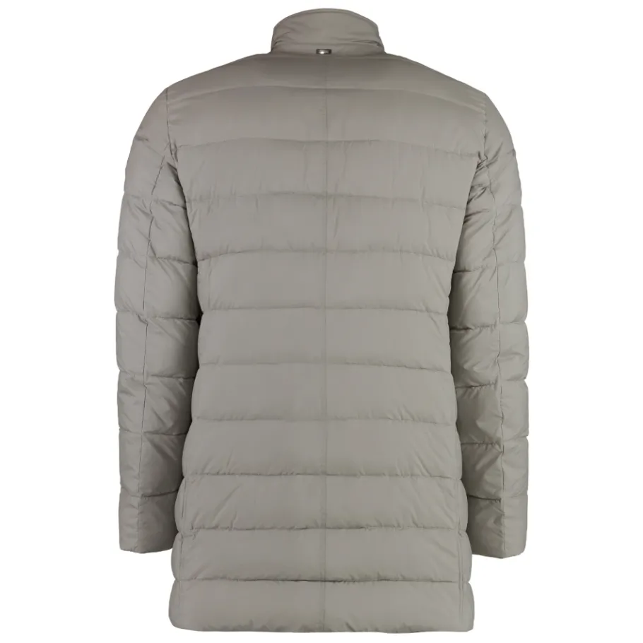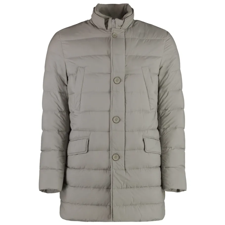De Herno Techno-nylon donsjas combineert een lichtgewicht techno-nylon buitenlaag met een warme ganzendons vulling voor dagelijks gebruik bij koud weer. Praktische zakdetails en een veilige ritssluiting met flap maken het een veelzijdige buitenlaag voor in de stad en op reis. Belangrijkste kenmerken: Grijs | Polyamide | Isolerende donsvulling | Twee handwarmerzakken | Twee voorzakken met knoopsluiting | Ritssluiting met flap met knopen | Techno-nylon buitenlaag | Lange mouwen | Voorflap met knopen | Samenstelling & verzorging: 90% ganzendons, 10% ganzenveer | 100% polyamide | 100% polyester | Stomerij.