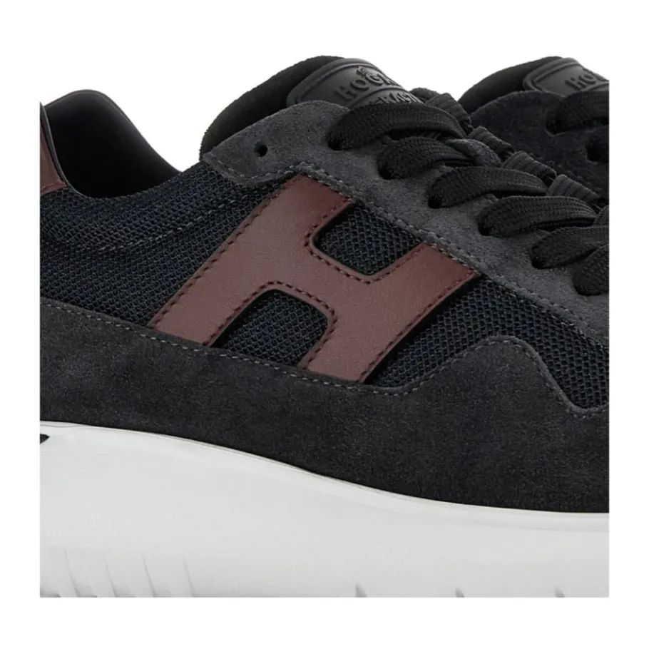 Ontdek de perfecte combinatie van stijl en comfort met deze Hogan sneakers met micro-mesh panelen. Ideaal om je casual look te upgraden, deze sneakers zijn gemaakt van hoogwaardige materialen voor een moderne touch. Belangrijkste kenmerken: Zwart | Suède | Leder | Micro-Mesh | Ronde neus | Vetersluiting aan de voorkant | Logopatch | Afmetingen en pasvorm: Regular fit | Samenstelling en onderhoud: Suède | Leder | Micro-Mesh | Schoonmaken met een vochtige doek. Heren schoenen vallen een maat kleiner uit. Hogan valt over het algemeen groot uit. Overweeg een maat kleiner te nemen.