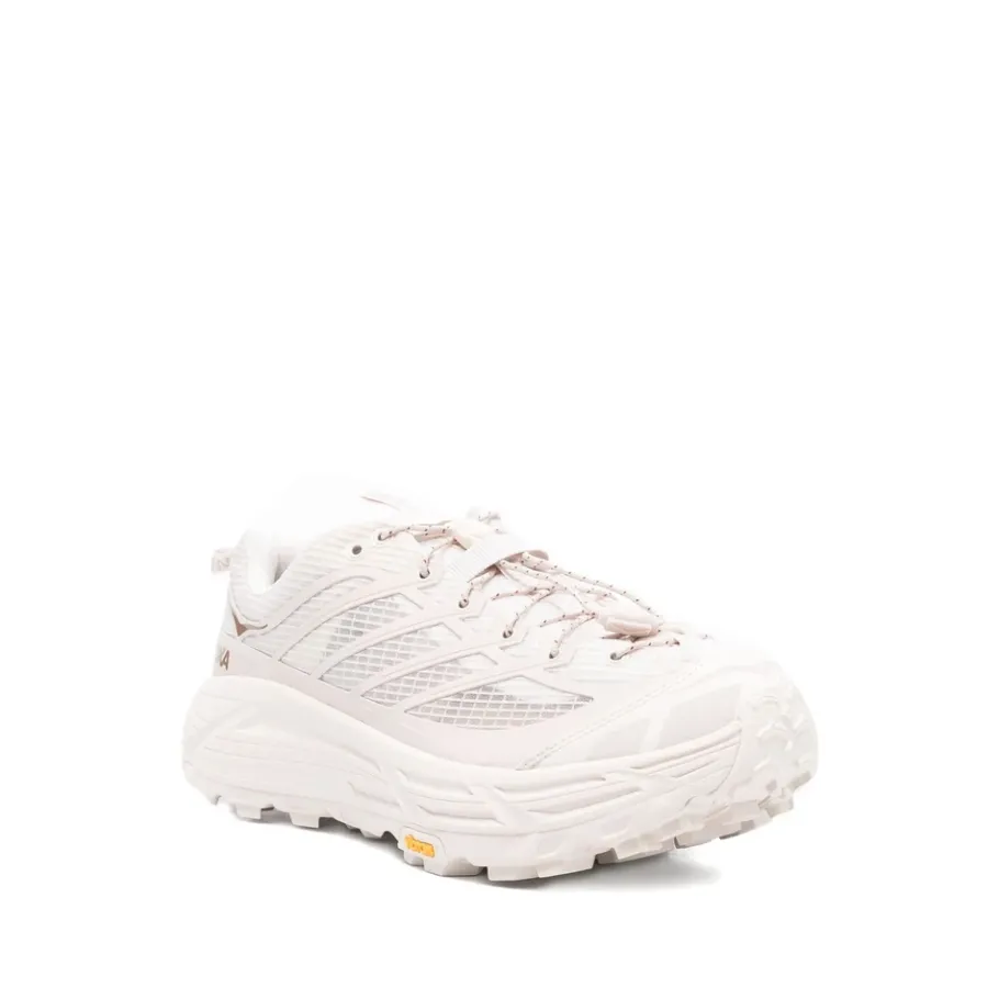De Hoka One One Mafate Three2 Grid combineert trail-ready grip met zachte, voorgevormde demping. Ontworpen voor ruige routes, combineert hij een ademend mesh bovenwerk met een rubberen buitenzool met grip voor een zelfverzekerd profiel op gemengd terrein. Belangrijkste kenmerken: Beige | Neutrals | Wit | Mesh | Lichtgewicht gedempte middenzool (EVA) | Verbeterde grip (Vibram Megagrip buitenzool) | Ademend bovenwerk | Vetersluiting met koordsluiting/toggle optie | Gewatteerde kraag voor comfort | Mesh bovenwerk met synthetische overlays | Laag model silhouet | Voorgevormde middenzool | Rubberen buitenzool met noppen | Treklippen aan de hiel en tong | Samenstelling & verzorging: Textiel (mesh) bovenwerk | Synthetische overlays (polyurethaan) | Textiel voering | Rubberen buitenzool