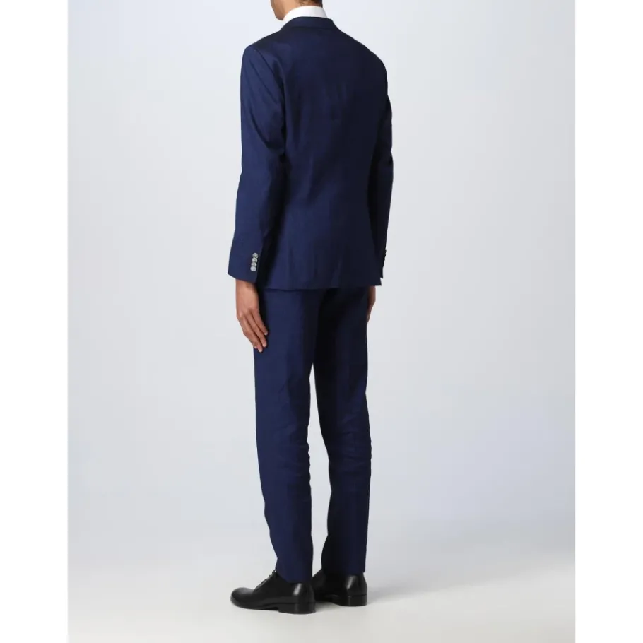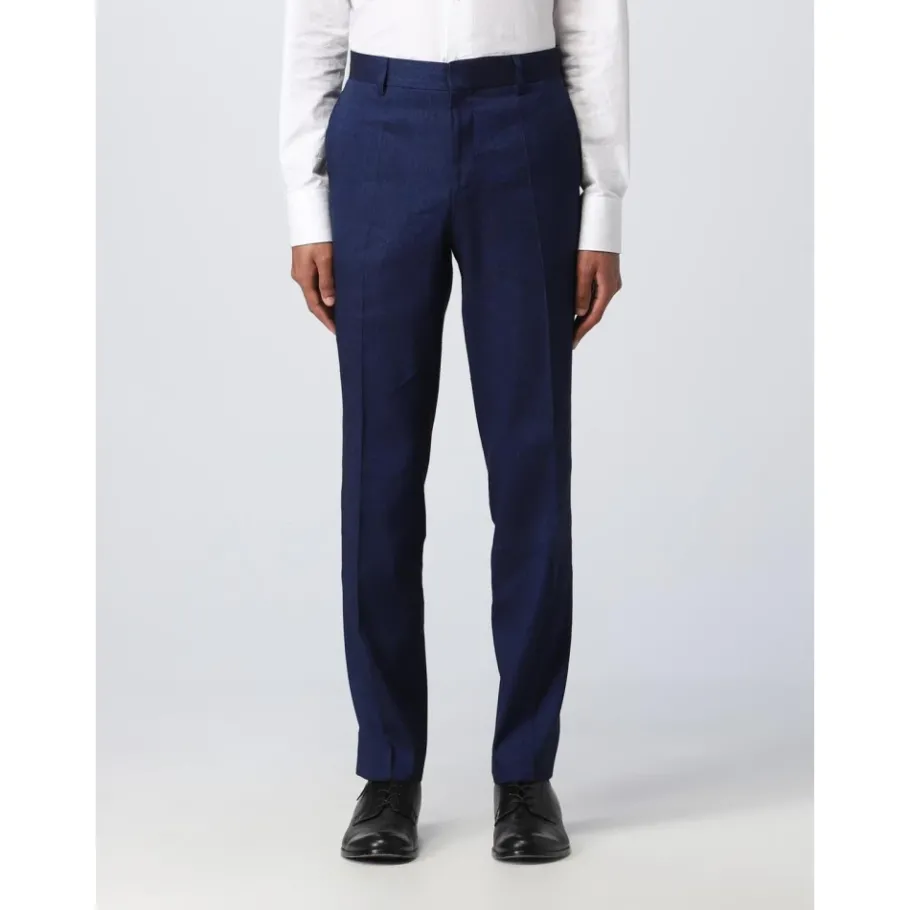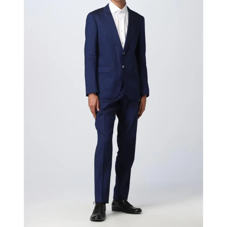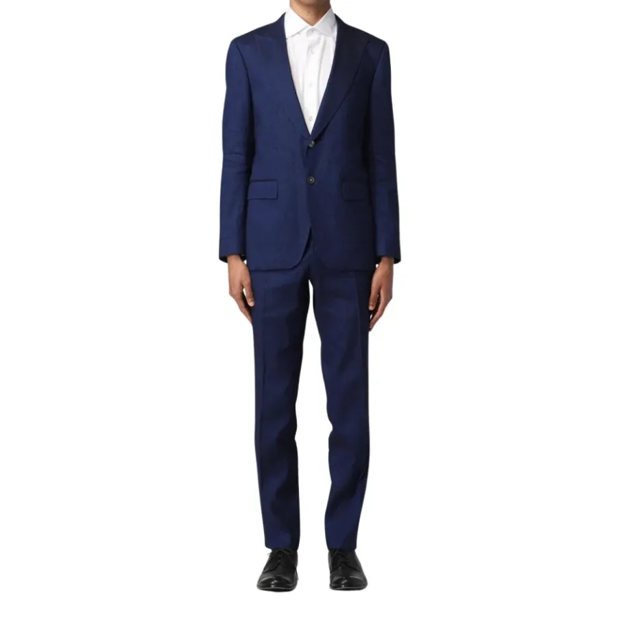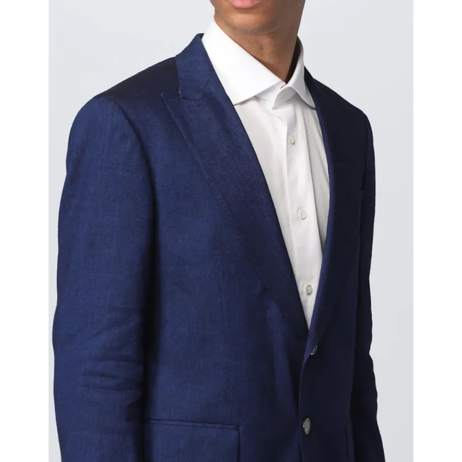 Verhoog je stijl met dit scherpe en verfijnde Hugo-pak voor heren in het blauw. Op maat gemaakt van een linnenmixstof, biedt dit single-breasted pak een strakke silhouet en tijdloze uitstraling, perfect voor zakelijke en formele gelegenheden.