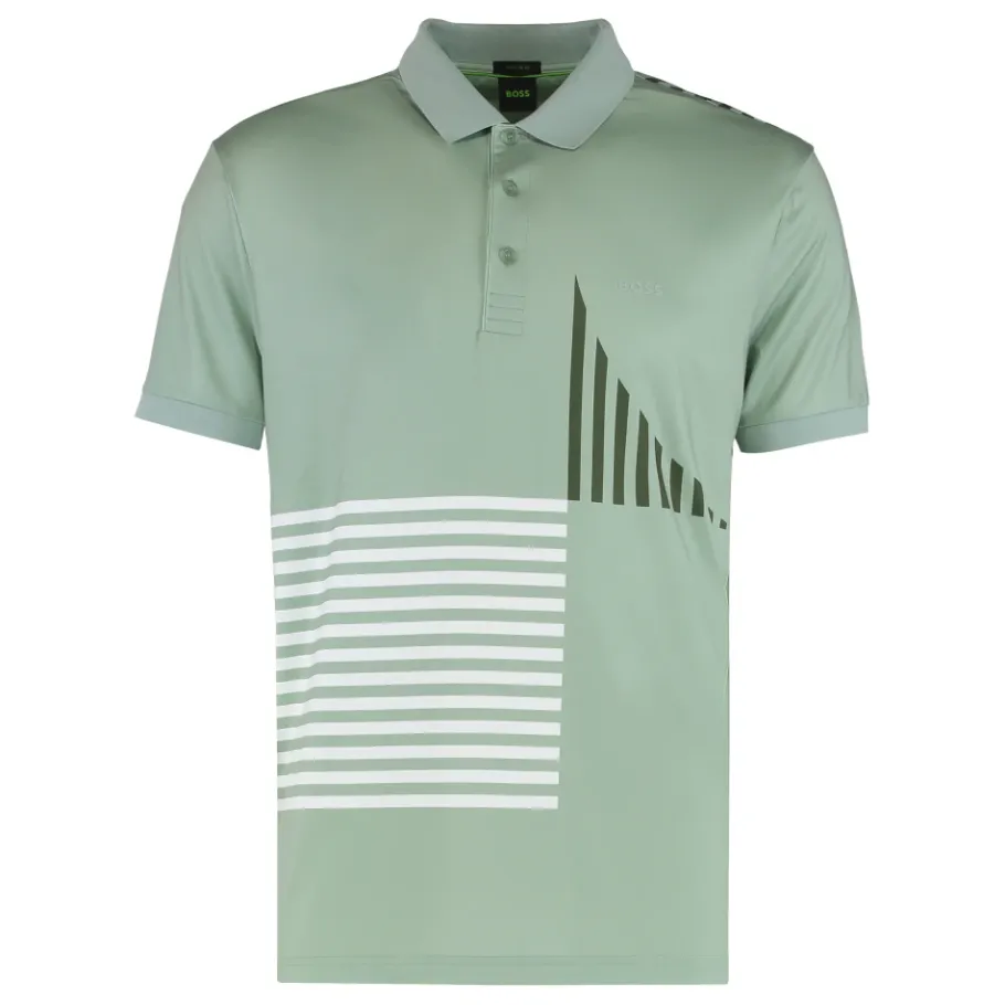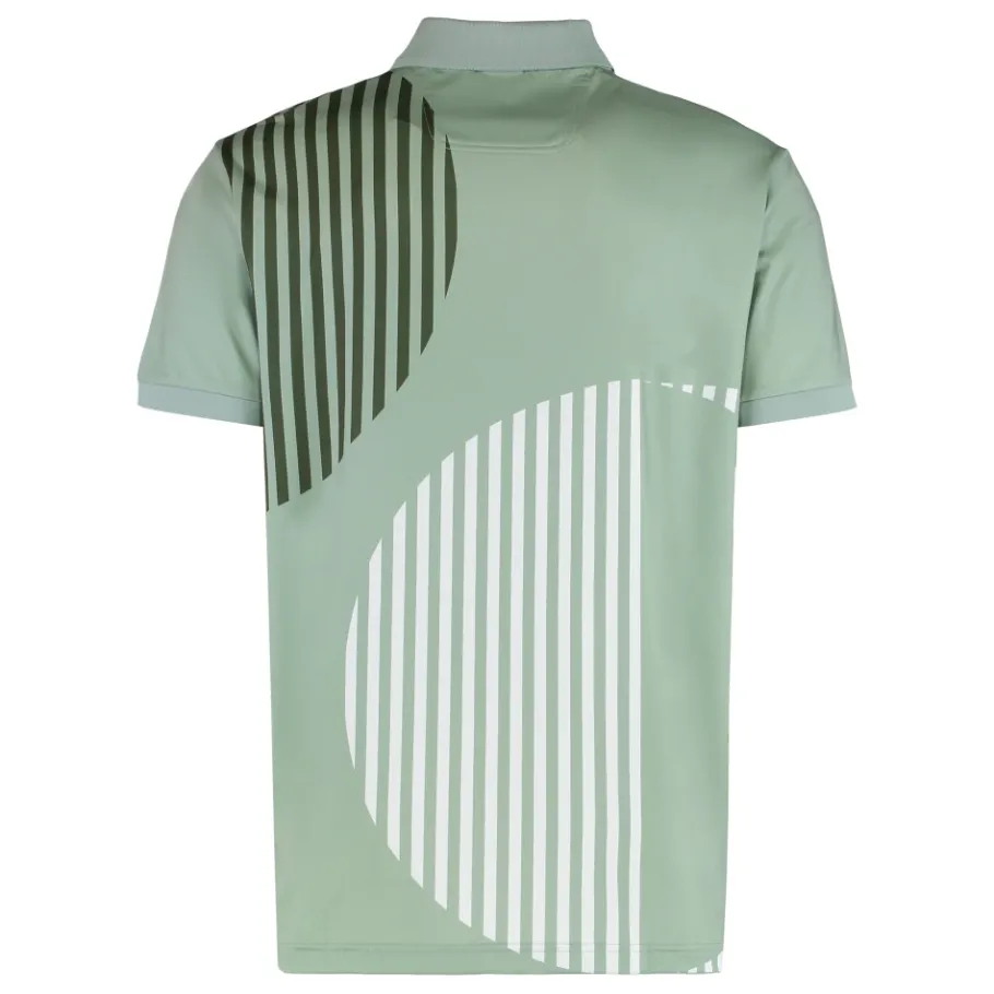 De Hugo Paddy Striped Polo combineert technische stretchstof met een moderne grafische streep aan de voorkant, waardoor het een verfijnde optie is voor casual en smart-casual kleding. Belangrijkste kenmerken: Groen | Polyester | Ademende stof | Stretchstof | Knoopsluiting | Traditionele kraag | Korte mouwen | Grafisch streepmotief (horizontale en verticale lijnen) | Logoprint op de voorkant | Afmetingen & pasvorm: Regular fit | Samenstelling & onderhoud: 92% Polyester | 8% Elastaan