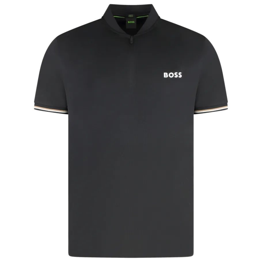 De Hugo Technical Fabric Polo Shirt combineert een slanke silhouet met een technische polyester constructie voor een gestroomlijnde, prestatiegerichte polo, ideaal voor dagelijks gebruik en op reis. Belangrijkste kenmerken: Zwart | Polyester | Technische stof | Geribbelde kraag | Polo kraag | Afmetingen en pasvorm: Slim fit | Samenstelling en verzorging: 100% Polyester