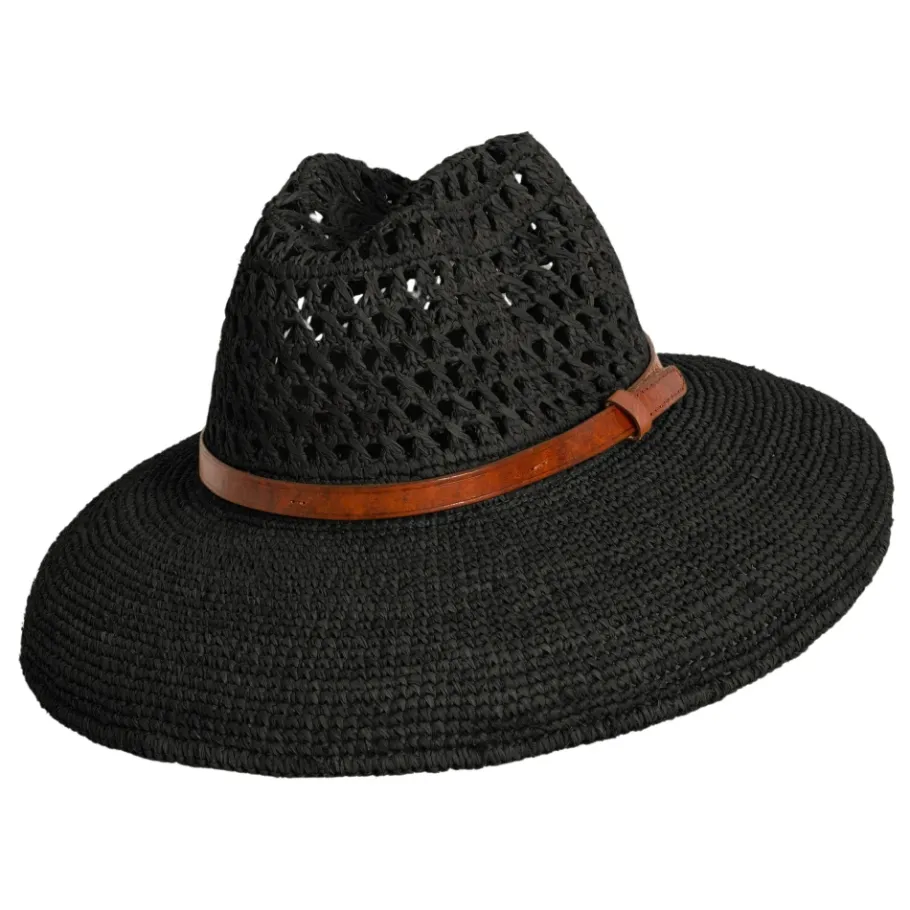 De Ibeliv SOA Hat is een handgehaakte hoed met een brede rand, ontworpen om verstelbaar te zijn en zijn vorm te behouden. Het combineert een stevige maar lichte constructie van raffia met een leren band en een gepatenteerd maatvoering systeem voor een aanpasbare pasvorm. Belangrijkste kenmerken: Zwart | Raffia | | Lichtgewicht | Opvouwbaar | Vormvast | Verstelbare maat met gepatenteerd IBELIV krassysteem | Verborgen draad aan de randpunten voor vormbehoud | Opvouwbaar voor reizen en opslag | Brede rand van 11 cm | Leren band detail | Volledig gehaakte constructie | Rand kan naar beneden of omhoog worden gedragen | Afmetingen en pasvorm: One size | Brede rand: 11 cm | Verstelbare pasvorm via gepatenteerd IBELIV krassysteem | Behoudt de vorm, of de rand nu omhoog of omlaag wordt gedragen | Samenstelling en onderhoud: 100% Raffia | Katoenen hoofdband voering | Zebu leren band | Reinigen met een licht vochtige spons. Gebruik indien nodig een kleine hoeveelheid neutrale zeep.