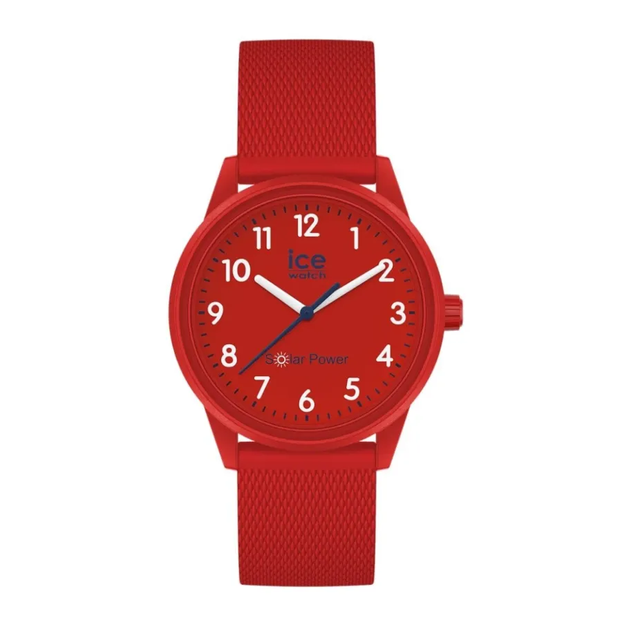 Ice-Watch horloge met een levendige rode uitstraling en solar-quartz uurwerk, ontworpen voor betrouwbare, dagelijkse tijdwaarneming. Belangrijkste kenmerken: Rood | Wit | Polymeer | 5 ATM waterbestendigheid (50 m) | Solar-quartz uurwerk | Mineraalglas | Lichtgewicht (ca. 25 g) | Pin gespsluiting | Rode wijzerplaat met witte Arabische cijfers | Bijpassende rode kast en band | Afmetingen & pasvorm: Kastdiameter: ca. 36 mm | Kast hoogte: ca. 11,2 mm | Bandbreedte (aanzet/band): 18 mm | Gewicht: ca. 25 g | Samenstelling & onderhoud: Polymeer kast | Siliconen band | Mineraalglas kristal | Solar-quartz uurwerk
