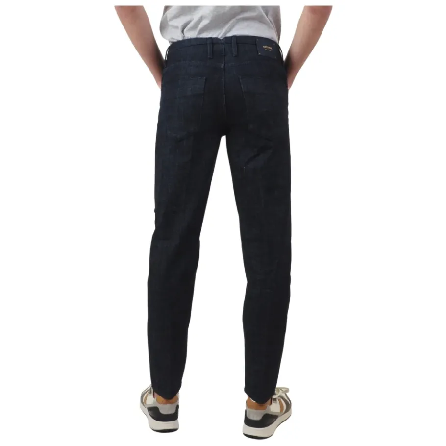 Donkerblauwe sartoriale slim-fit jeans voor heren. Donkerblauwe kleur met op maat gemaakte afwerking. Gemaakt van 98% katoen en 2% elastaan. Voorzien van 5 zakken en een getailleerde sartoriale pasvorm. Productcode BDPX0001-02615-W1. Ons model is 190 cm lang en draagt maat 32. Klik hier voor meer herenjeans.