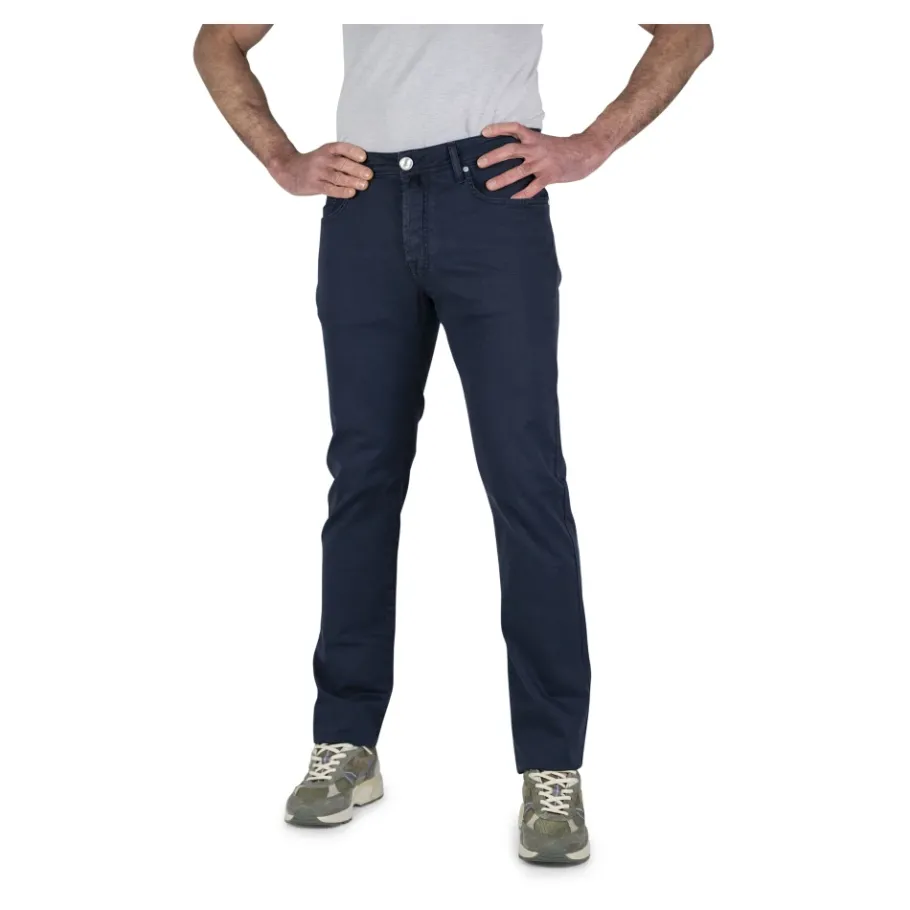 Ontdek deze stijlvolle Jacob Cohën slim-fit broek voor heren in het blauw. Gemaakt in Italië, deze zomerbroek heeft een 5-pocket ontwerp met opgestikte achterzakken, riemlussen en een knoopsluiting. Gemaakt van een rekbare stofmix van 55% katoen, 42% lyocell en 3% elastaan voor een comfortabele pasvorm. Klik hier voor meer herenbroeken.