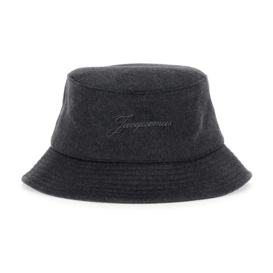 Upgrade je stijl met de ‘Le Bob Cachemiro’ Grey Bucket Hat van Jacquemus. Deze wollen hoed heeft logo borduursel op de voorkant en een geribbelde rand, perfect voor de moderne man.