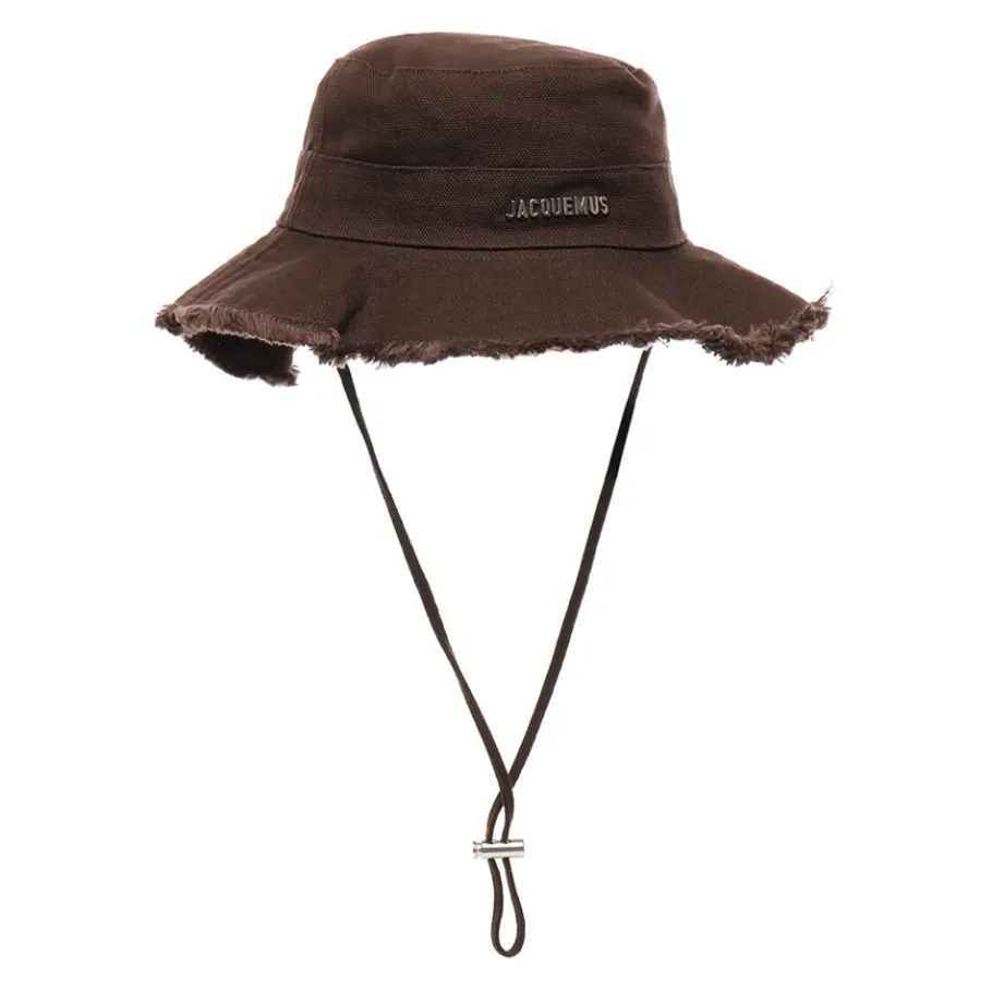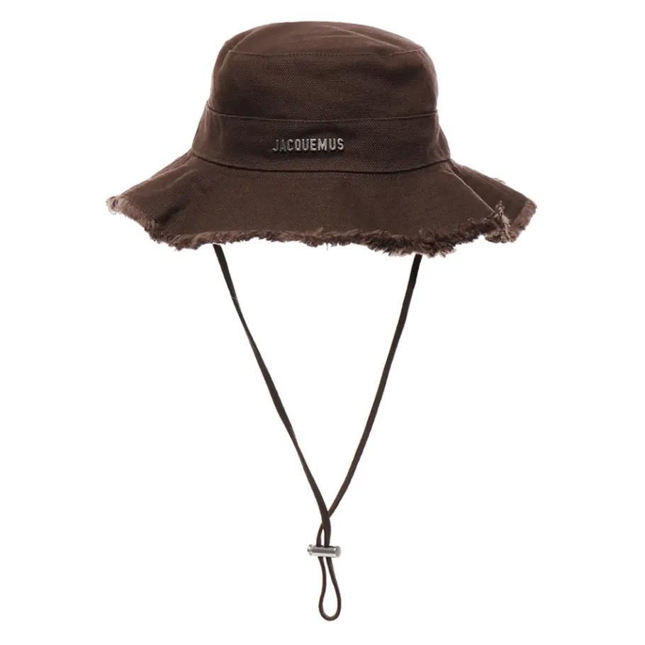 Upgrade je stijl met deze Jacquemus hoed voor mannen. Gemaakt van 100% katoen, met metalen logo belettering, lange verstelbare koord, gestikte rand en in een bruine kleur. Perfect voor een casual en toch modieuze uitstraling.