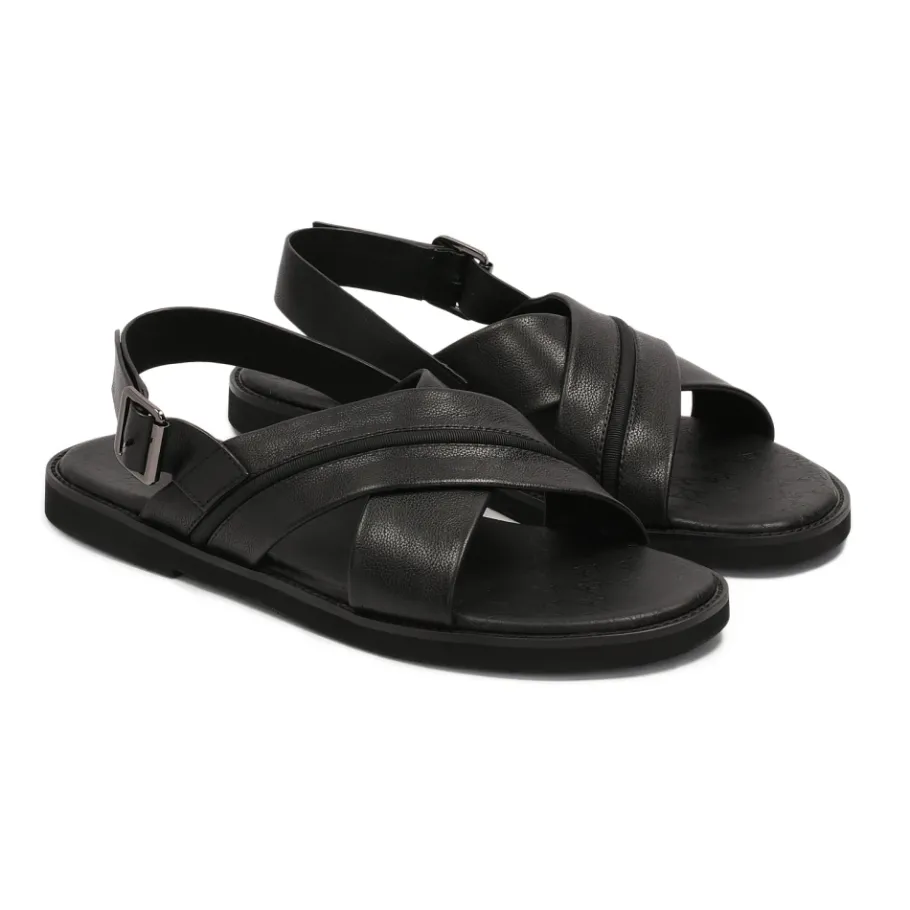 Sandalen gemaakt van hoogwaardig graanleer zijn voor mannen die op zoek zijn naar comfortabele, ademende schoenen voor het zomerseizoen die veelzijdig genoeg zijn om te dragen met een grote verscheidenheid aan outfits. De strakke snit van het bovendeel met brede banden en een gespsluiting ziet er interessant uit aan de voet. Zwarte leren sandalen in een casual stijl zijn een must-have voor je zomergarderobe. Het kalfsleren gevoerde interieur van de schoen garandeert hygiënische omstandigheden en hoog comfort.