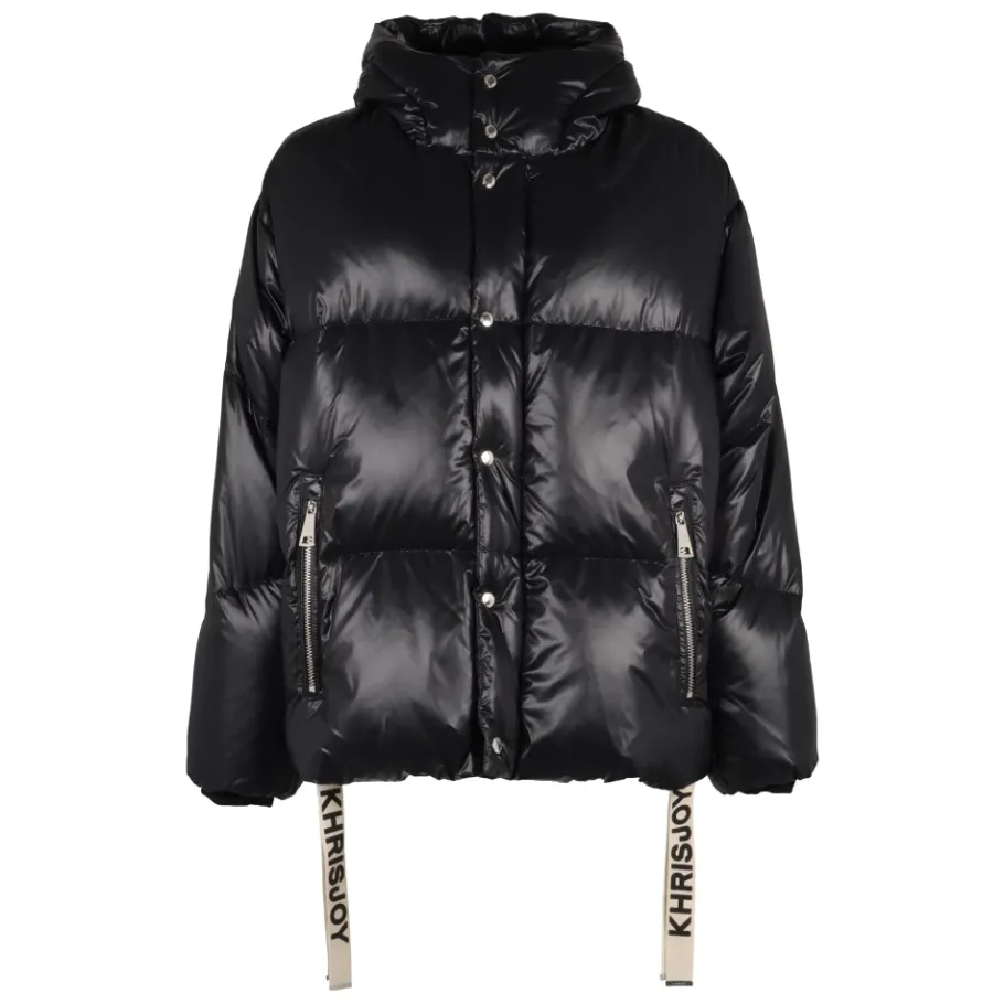 De Khrisjoy Puff Khrisman Hooded Down Jacket combineert ruime, met dons gevulde isolatie met kenmerkende logo-lintdetails voor een moderne, alledaagse winterse buitenlaag. De verstelbare capuchon en zakken met ritssluiting maken hem praktisch voor gebruik bij koud weer. Belangrijkste kenmerken: Zwart | Polyamide | Isolerende, met dons gevulde constructie | Verstelbare capuchon met trekkoord | Rits- en drukknoopsluiting | Zijzakken met ritssluiting | Vaste capuchon | Lange mouwen | Logo-lintdetail | Geribbelde boorden | Afmetingen en pasvorm: Lengte (ca.): 71.12 cm van schouder tot zoom | Oversized pasvorm | Maatgids Khrisjoy: 00 = 0 – XS/S; 01 = 1 – M | Samenstelling en onderhoud: Buitenkant: 100% polyamide | Voering: 100% polyester | Vulling: 100% polyester | Vulling: 80% dons; 20% veren | Handwas.