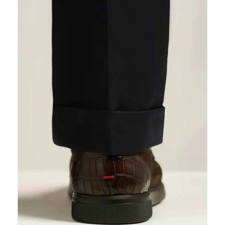 De Kiton Penny Loafer combineert fluweelzacht suède kalfsleer met inzetten van krokodillenleer om een verfijnd, gestructureerd silhouet te creëren. De rubberen zool voegt alledaagse veelzijdigheid toe met behoud van de geklede uitstraling van de loafers. Belangrijkste kenmerken: Donkerbruin | Koffie | Suède kalfsleer | rubberen zool | Rubberen zool voor veelzijdige slijtage en grip | Taps toelopend silhouet | Penny loafer band | Inzetten van krokodillenleer | Contrasterende suède en krokodillen structuren | Samenstelling & onderhoud: Voering: 100% kalfsleer | Bovenkant: 100% kalfsleer; inzetten van krokodillenleer 100% krokodil | Zool: 100% EVAC (synthetisch) | Binnenzool: 100% kalfsleer; 100% elastodiene | Vermijd langdurige blootstelling aan licht, hitte en vochtigheid. Vermijd contact met water, oliën, parfums en oplosmiddelen. Bewaar en reinig indien nodig door een leerspecialist.