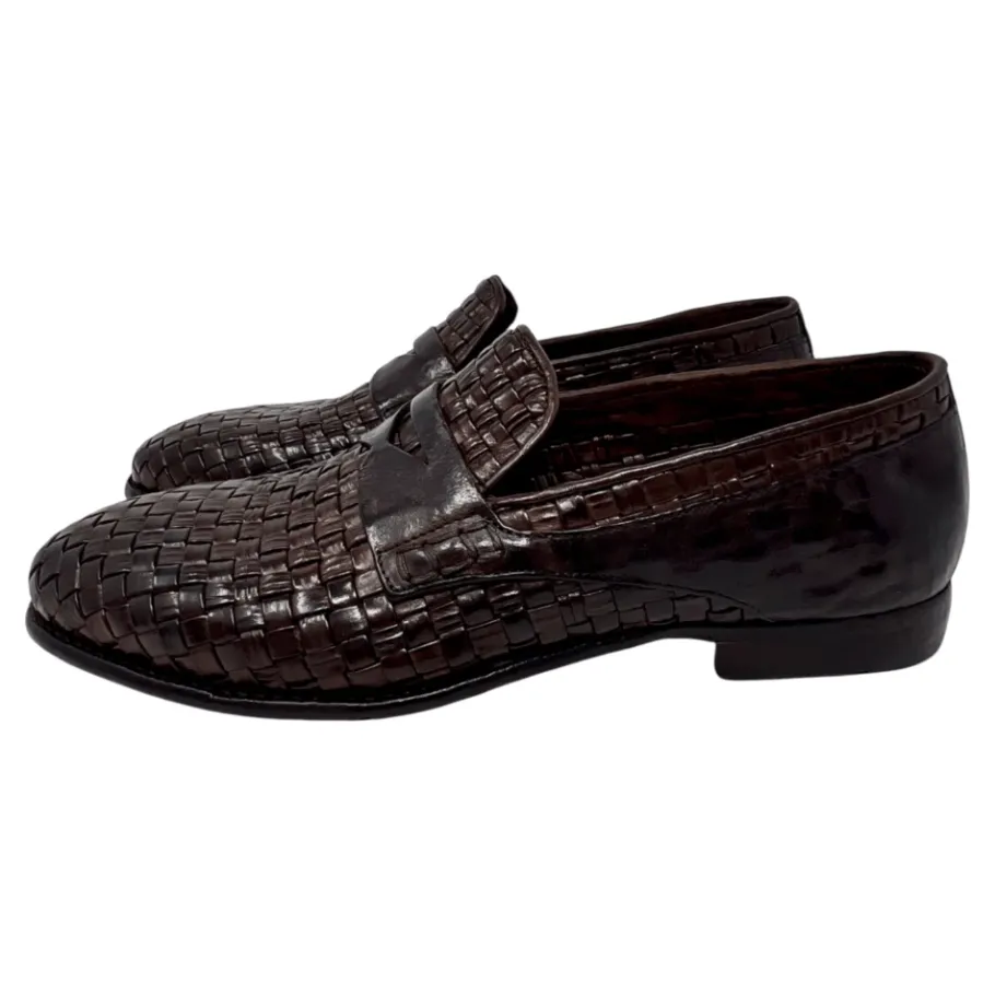 Lemargo Alvaro Moccasin is een handgemaakte, gevlochten kalfsleren loafer van Lemargo, gemaakt in Italië. Het gevlochten bovenwerk en de handgekleurde afwerking geven de schoen een kenmerkende, getextureerde look voor verfijnde casual kleding. Belangrijkste kenmerken: Bruin | Ebano | Kalfsleer | Stabiele buitenzool voor een veilig gevoel | Slip-on ontwerp | Gevlochten kalfsleren bovenwerk | Handgekleurde afwerking met subtiele, onregelmatige kleurvariatie | Mocassin/loafer silhouet | Samenstelling & verzorging: Kalfsleer