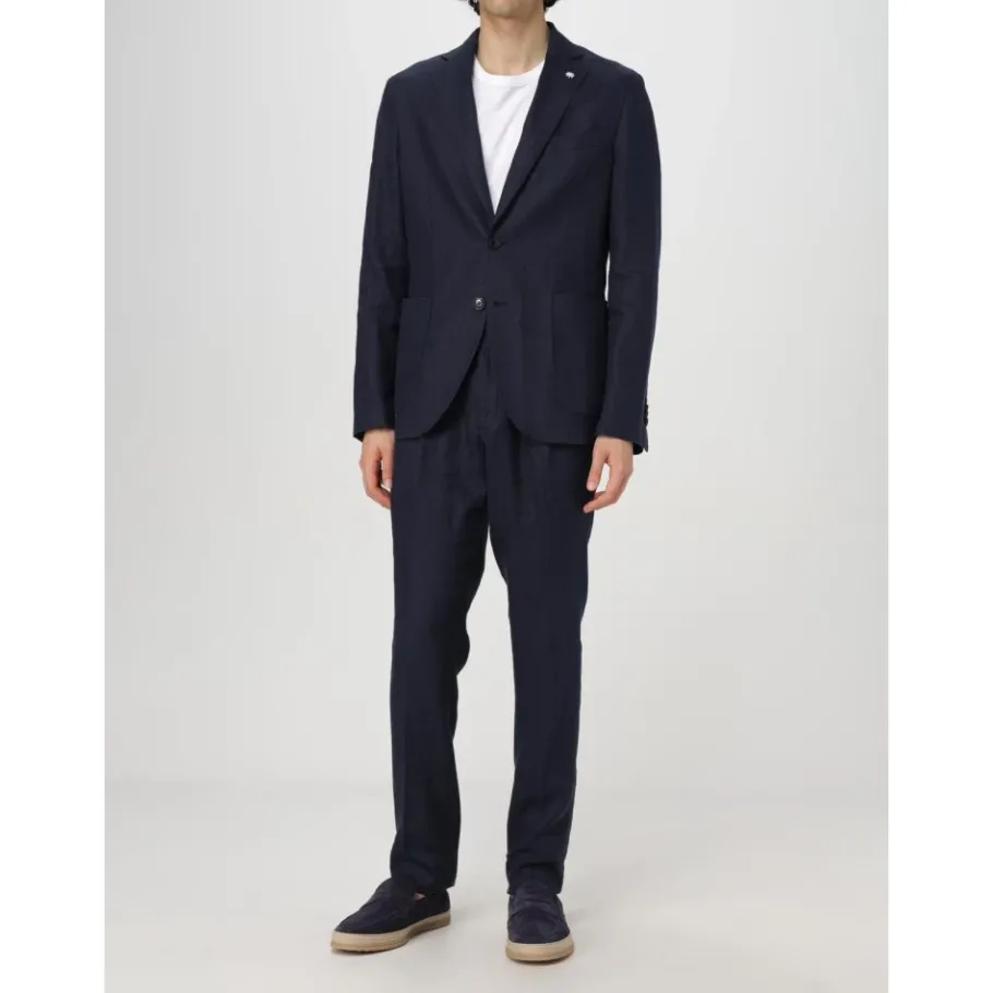 Manuel Ritz Beige Tweedelig Linnen Pak-Heren Kostuums