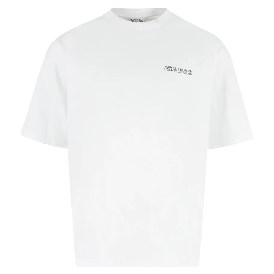 Marcelo Burlon T-shirt met ronde hals, met een opvallende print op de rug en een geribbelde halslijn, gemaakt voor dagelijks comfort van katoen. Belangrijkste kenmerken: Wit | Katoen | Print op de rug | Geribbelde halslijn | Samenstelling & verzorging: 100% katoen