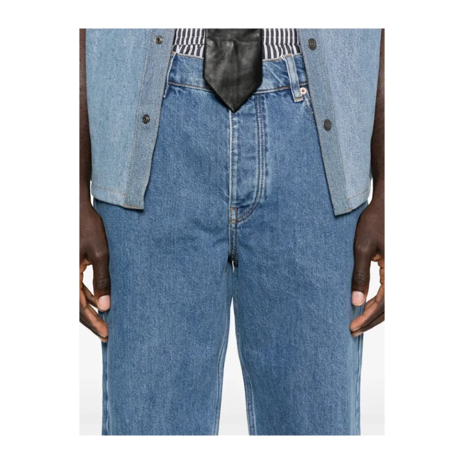 De Marine Serre Moon Laser Loose Denim Jeans combineren het kenmerkende halvemaan detail van het merk met een strak silhouet met rechte pijpen. Ontworpen voor dagelijks gebruik, combineren ze een grafisch focuspunt met klassiek vijf-pocket nut. Belangrijkste kenmerken: Blauw | Denim | Knoopsluiting | Vijf-pocket design | Riemlussen | Halvemaan logo print | Tonale stiksels | Afmetingen & pasvorm: Rechte pasvorm