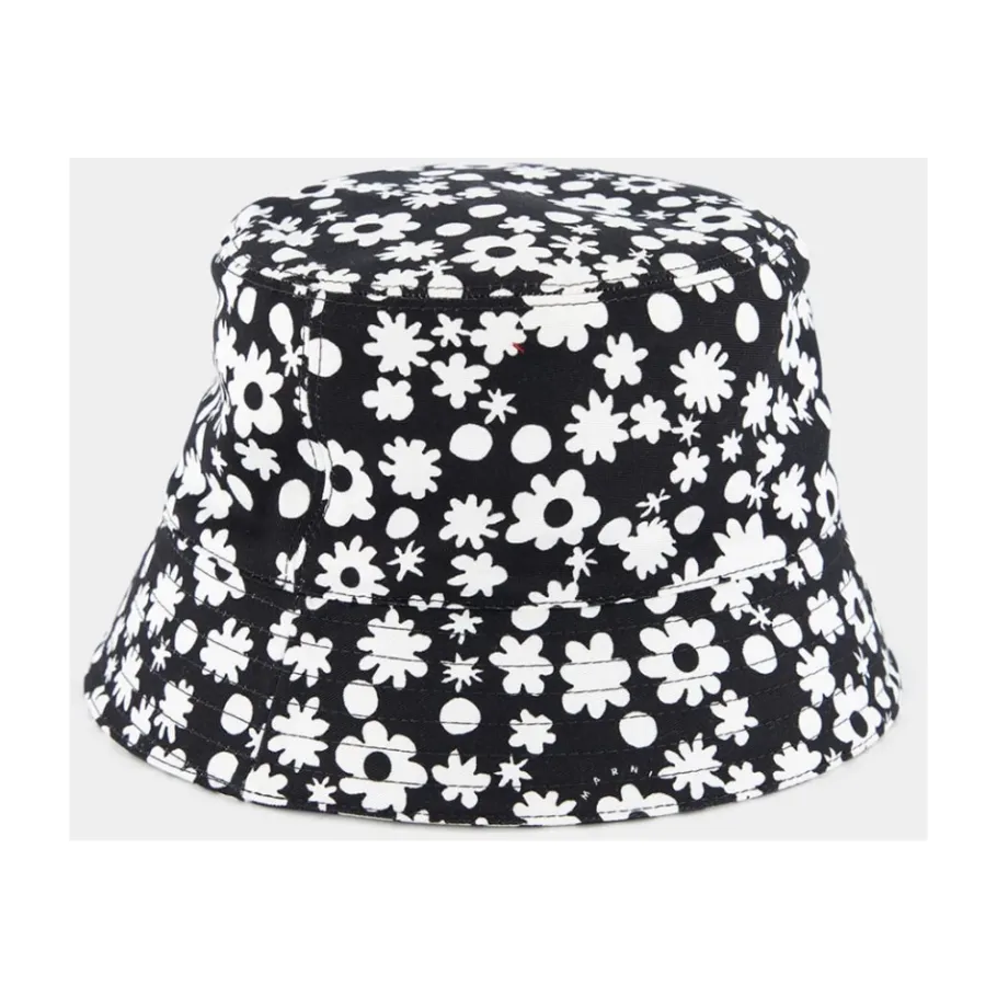 Upgrade je casual outfits met deze Marni bucket hoed voor mannen, met het opvallende zwart-witte Pop Fields motief met rode Marni borduursel. Gemaakt van hoogwaardig katoenen keperstof en gevoerd met zachte katoen voor comfort. Gemaakt in Italië met aandacht voor kwaliteit en vakmanschap. Verzorgingsinstructies: Afvegen met een zachte doek.