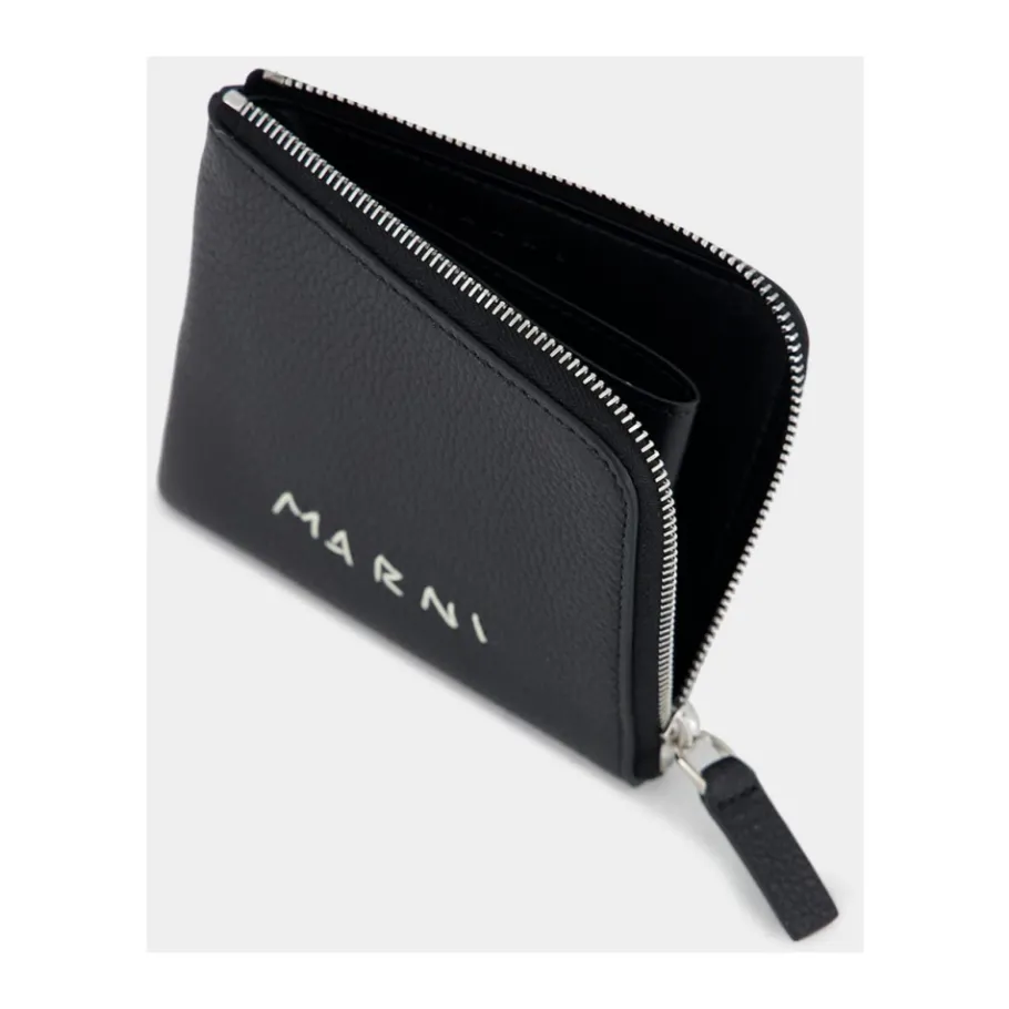 Ontdek de luxueuze maar zwarte ritssluiting portemonnee van Marni, vervaardigd uit gefreesd kalfsleer. Met het handgestikte Marni Mending-logo aan de voorkant voor een ambachtelijke touch. Gemaakt in Italië met messing- en zama-metalen onderdelen, toont deze portemonnee vakmanschap van hoge kwaliteit en strak ontwerp. Beveilig uw essentiële items met de L-vormige ritssluiting en geniet van het verfijnde ovine leren interieur. Specialistische lederreiniging wordt aanbevolen voor onderhoud.