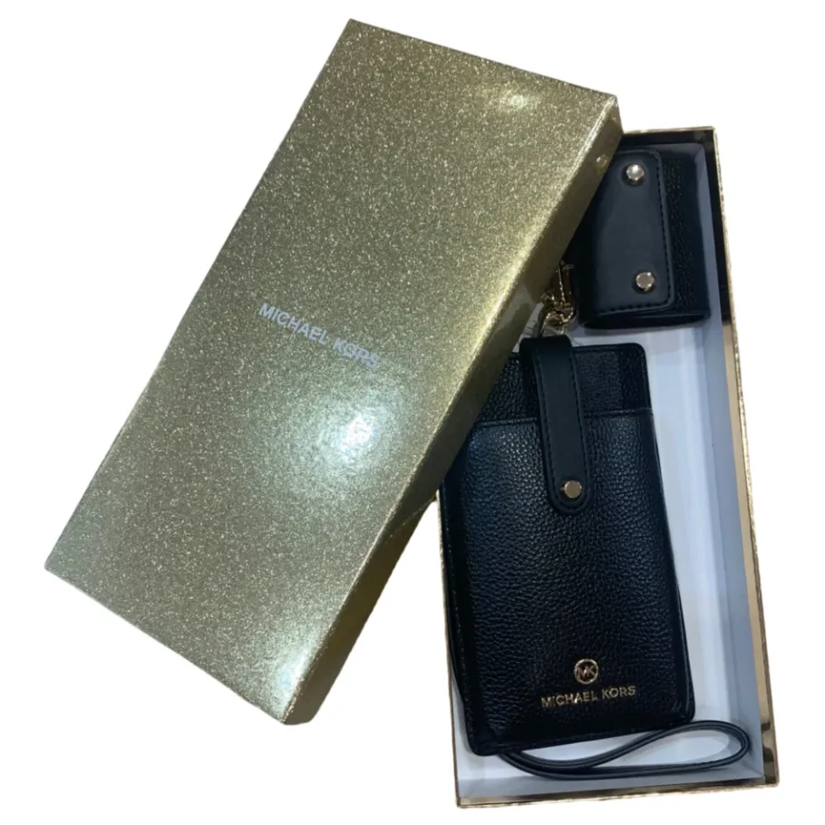 Houd je essentiële spullen georganiseerd en in stijl met deze Michael Kors lederen portemonnee en kaarthouder set, compleet met een handige hoofdtelefoonhouder. Perfect voor de moderne man onderweg.