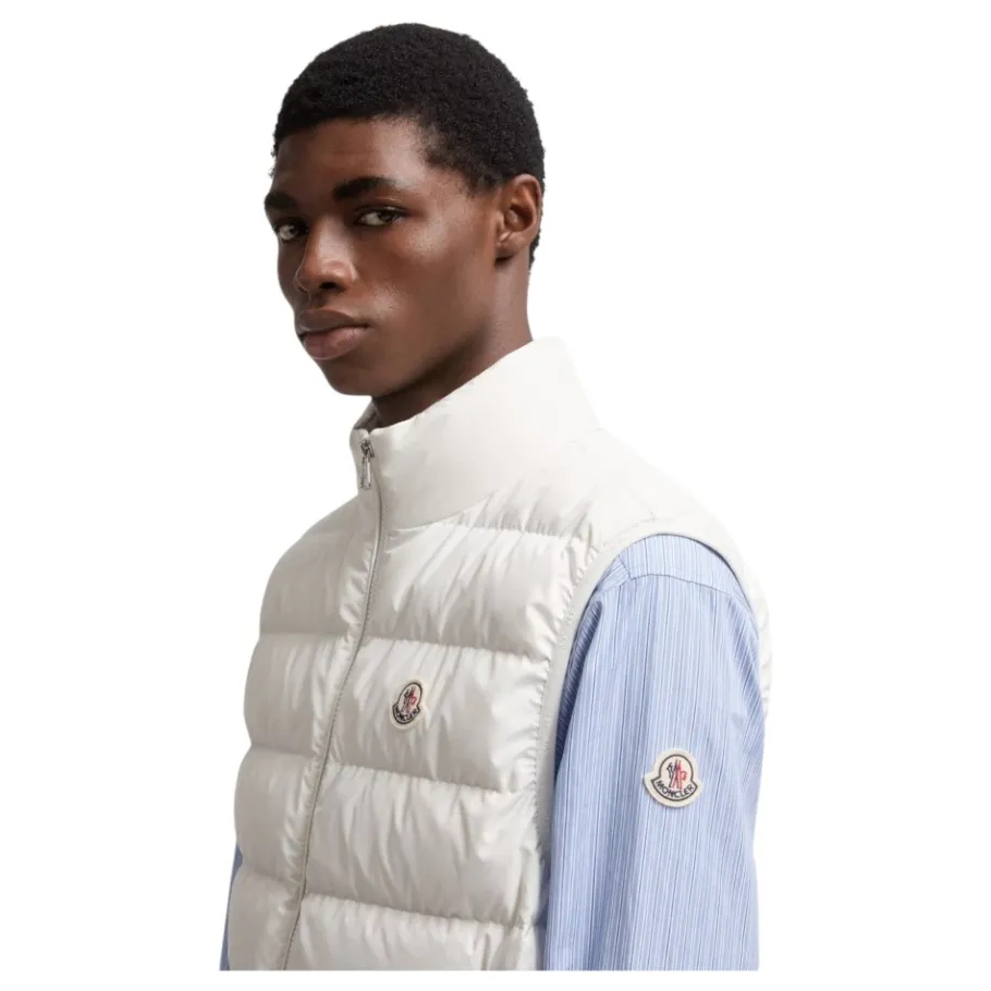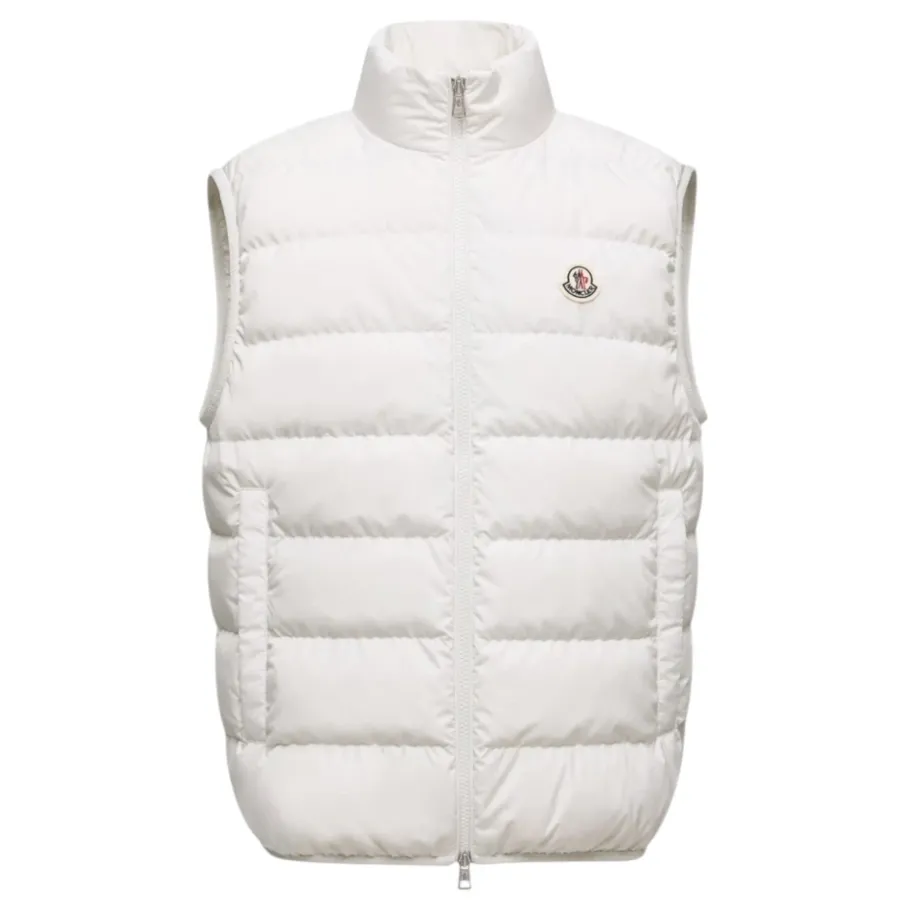 De Moncler Contrin Down Gilet combineert lichtgewicht donsisolatie met een strak, minimalistisch silhouet, waardoor hij ideaal is om in laagjes te dragen bij wisselvallig weer. Belangrijkste kenmerken: Wit | Polyester | Isolerende donsvulling | Lichtgewicht warmte | Geschikt voor laagjes | Ritssluiting | Zijzakken met drukknoopsluiting | Binnenzak met rits | Opstaande kraag | Minimalistisch silhouet | Subtiele logobies | Rechte snit | Mouwloze gilet | Afmetingen & pasvorm: Lengte (kraag tot zoom): 65 cm | Regular fit | Rechte snit | Model is 188 cm lang en draagt maat 3 | Samenstelling & verzorging: Buitenkant: 100% Polyester | Voering: 100% Polyester | Vulling: 90% Dons, 10% Veren | Handwas; niet bleken; niet in de droogtrommel; strijken op max. 110°C zonder stoom; niet chemisch reinigen; niet professioneel nat reinigen; plat drogen in de schaduw.