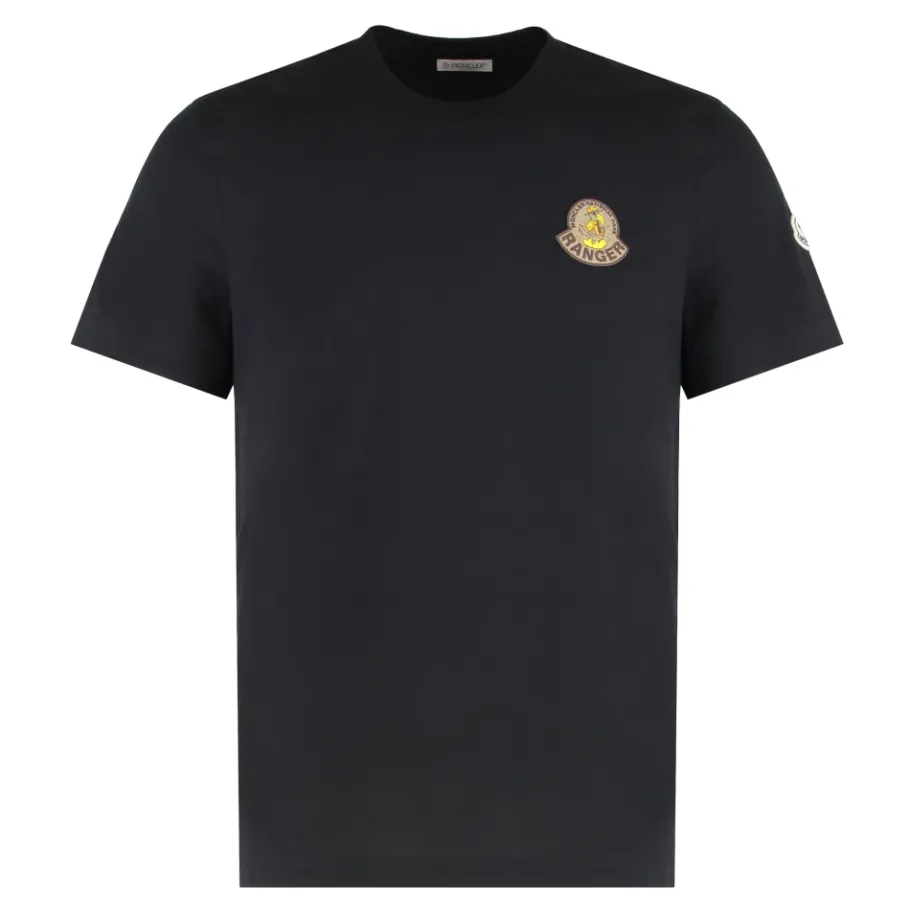 Het Moncler Mon Duck Logo Katoenen T-Shirt combineert een kenmerkende Mon Duck patch met zachte katoenen jersey voor ademend, de hele dag comfort en veelzijdige casual styling. Belangrijkste kenmerken: Zwart | Katoen | Ademende stof | Zacht aanvoelend | Geschikt voor dagelijks gebruik | Gemakkelijk te combineren met casual broeken of jeans | Ronde hals | Korte mouwen | Mon Duck logo patch | Afmetingen & pasvorm: Regular fit | Samenstelling & verzorging: 100% Katoen | Machinewas koud (max. 30°C) – mild proces; niet bleken; niet in de droogtrommel; strijken max. 110°C zonder stoom; niet chemisch reinigen; professioneel nat reinigen (mild); plat drogen in de schaduw.
