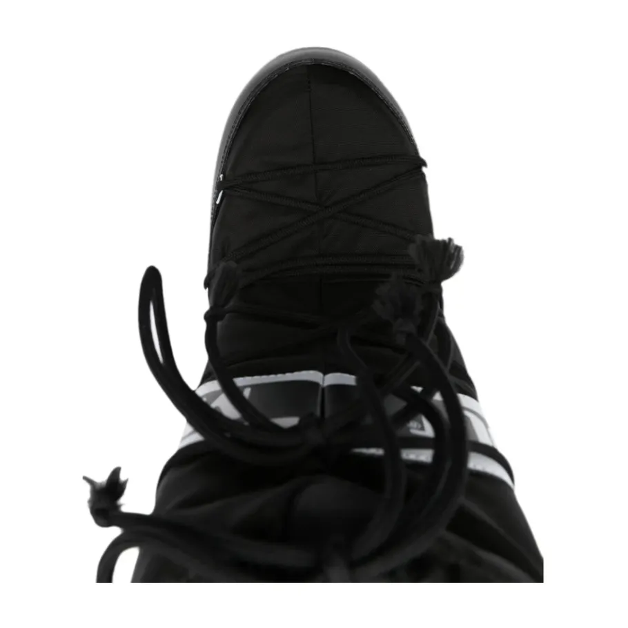 De Moon Boot Icon Nylon Boots brengen het kenmerkende, door astronauten geïnspireerde silhouet van het merk naar winterkleding, waarbij een geïsoleerde constructie en een waterafstotend nylon bovenwerk worden gecombineerd voor grip en warmte op koude dagen. Belangrijkste kenmerken: Zwart | Nylon | Waterafstotend | Geïsoleerd | Antislip profielzool | Vetersluiting aan de voorkant (esthetisch) | Trekkoord aan de schacht | Instapmodel met multisize schuimvoering | Ambidexter ontwerp | Paneel met logoprint | Ronde neus | Enkellengte | PVC hielstuk en rand | Zilverkleurige metalen oogjes | Afmetingen en pasvorm: Enkelomtrek: 40,0 centimeter | Hak: 2,0 centimeter | Hoogte: 31,0 centimeter | Zoolhoogte: 2,0 centimeter | Ambidexter (geen links/rechts onderscheid) | Aanbevolen om een maat groter te nemen (richtlijn fabrikant) | Samenstelling en onderhoud: Bovenwerk: 70% polyamide, 30% PVC | Voering: 100% polyester | Zool: 100% thermoplastisch rubber | Verwijder vuil met een zachte, droge borstel. Gebruik een zachte, vochtige doek met een mild reinigingsmiddel om vlekken te verwijderen. Reinig de tussenzool en buitenzool met een zachte borstel en een mild reinigingsmiddel. Laat drogen op kamertemperatuur. Bewaar in de originele zak of hoes.