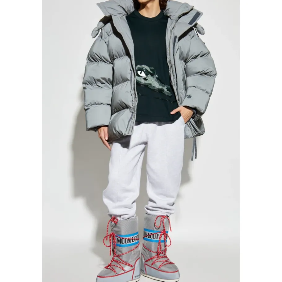 De Moon Boot Icon Space Racing Boots combineren het kenmerkende volumineuze, kniehoge silhouet van het label met een zwaar geïsoleerde voering voor betrouwbare bescherming tegen koud weer en een opvallende styling. Belangrijkste kenmerken: Zilver | Blauw | Rood | Nylon | Geïsoleerde voering | Waterafstotend bovenwerk | Antislip rubberen zool | Trekkoord aan de bovenkant | Gekruiste buisvormige veters | Multisize schuimvoering | Instapmodel | Kniehoog silhouet | Logo-print band met contrasterende streep | Gevoerd, volumineus profiel | Afmetingen & pasvorm: Zoolhoogte: 3 cm | Multisize schuimvoering past zich aan de voet aan; Moon Boot adviseert een maat groter te nemen voor dit model. | Samenstelling & onderhoud: Bovenkant: 57% polyamide, 18% polyester, 14% PU, 9% polyester chiffon, 2% viscose | Voering: 100% polyester | Zool: 100% thermoplastisch rubber | Gebruik een zachte, droge borstel om vuil te verwijderen. Veeg vlekken weg met een zachte, vochtige doek en een mild schoonmaakmiddel. Borstel de tussenzool en de buitenzool met een mild schoonmaakmiddel en water. Laat drogen op kamertemperatuur en bewaar in een beschermende zak.