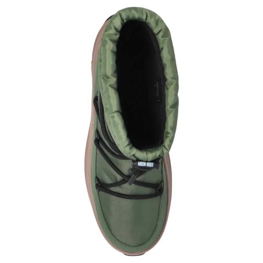 ‘MOON247 POLAR’ SNEEUWLAARZEN zijn een uitzonderlijke keuze voor kenners van originele stijl en comfort in winterse omstandigheden. Ze onderscheiden zich door een hoge, anatomisch gevormde bovenkant in een diepgroene tint en een stevige, brede zool die zelfs op ijzige oppervlakken stabiliteit biedt. Zorgvuldig geselecteerde, synthetische materialen en lederachtige elementen garanderen bescherming tegen vocht en vorst, terwijl ze ook gemakkelijk schoon te houden zijn. De kenmerkende, diagonale veters benadrukken de individualiteit van het ontwerp, dat al jaren het handelsmerk is van MOON BOOT – DE ONGEBETWISTE INNOVATOR IN DE WERELD VAN SNEEUWLAARZEN. WAAROM ZOU U DIT PRODUCT MOETEN KOPEN? * Uitzonderlijke esthetiek geïnspireerd op de legendarische ontwerpen van Giancarlo Zanatta * Bescherming tegen ongunstige weersomstandigheden * Stabiliteit en draagcomfort dankzij de brede rubberen zool * Duurzaamheid en gemakkelijk onderhoud van de materialen * Uniek, modern detail in de vorm van diagonale veters Hoogte zool: 5 cm Hoogte zool op het hoogste punt: 6 cm